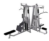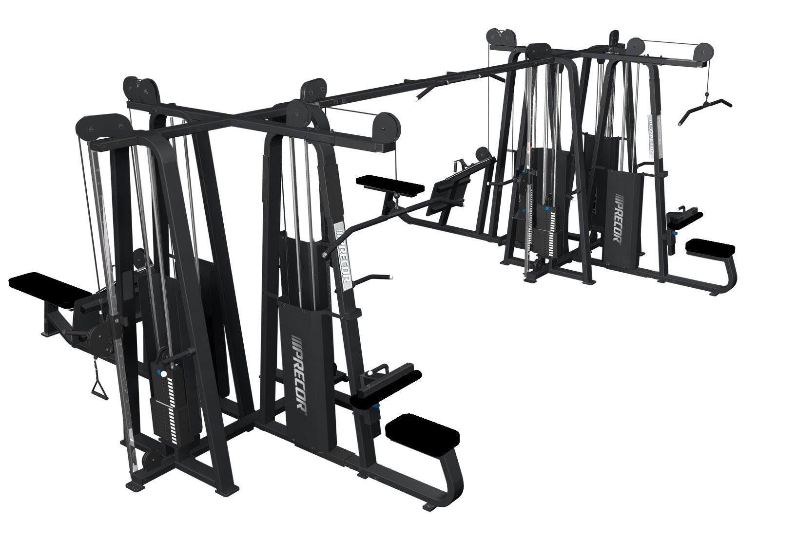 Icarian Multi Station weight stack shrouds are not available in all configurations. Cable Crossover has two Adjustable Hi/Lo Pulley stations connected by an overhead beam with pull-up bar