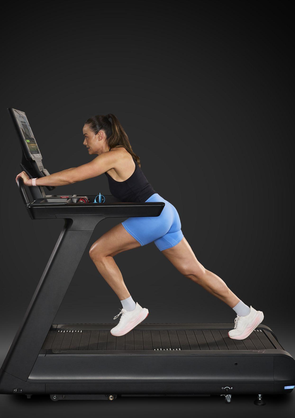 以板条式跑带为核心部件,专为稳定徒步、配 速跑及自驱式推力模式运动打造。超快的速度 和坡度调节响应可保持间歇转换平稳高效。