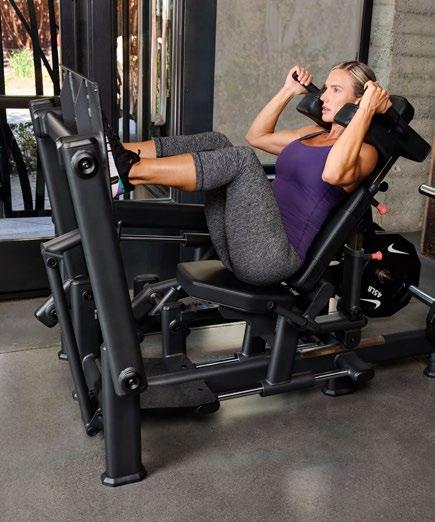 真正专注于臀部训练。坐姿推举机具有弧形运 动轨迹、大型脚踏板和可调节背垫,以提供最 佳对齐和激活效果。