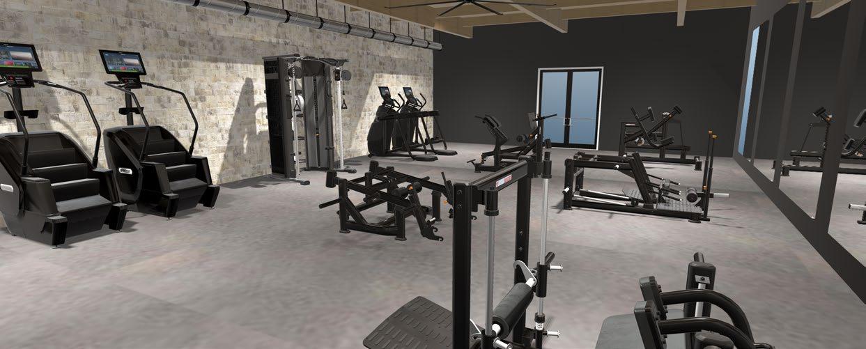 这一区域结合了平板负重力量训练设备与功能性有氧器材,如 StairClimber 和 AMT ,通过阻力、抬升和低冲 击运动支持臀部训练,适合多种训练方式。