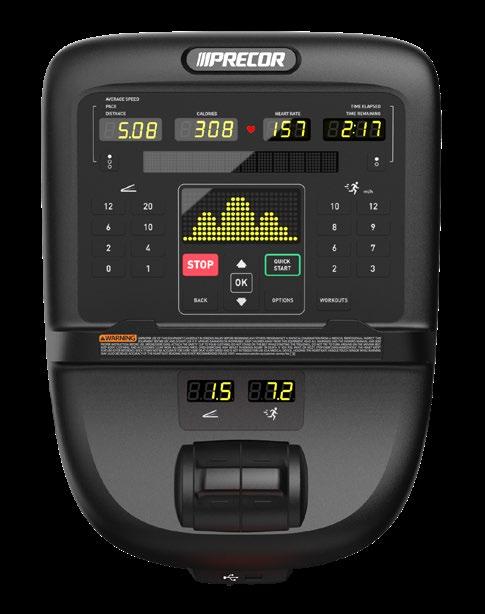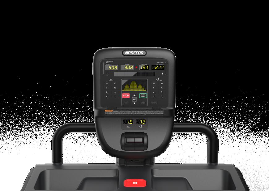 Dank eindeutig beschrifteter Schnellwahltasten und intuitiver Einstellräder können die Trainierenden Geschwindigkeit und Steigung ändern, ohne ihren Lauf zu unterbrechen. Jedes Bedienelement ist strategisch positioniert, damit es sich schnell und ohne umständliches Greifen erreichen lässt.