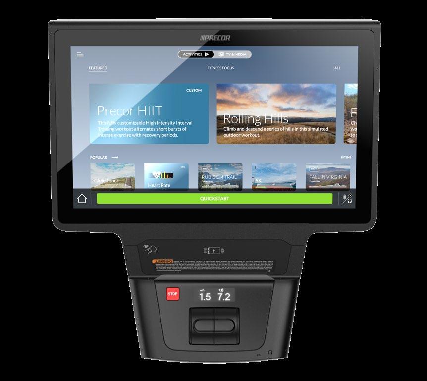 Die Touchscreen-Konsolen P94 und P84 bieten ein immersives Trainingserlebnis mit visuell ansprechendem Kadenz-Coaching, Push-Modus-Programmen und sieben HIIT-Trainings. Schnellwahltasten für Geschwindigkeit und Steigung sorgen für eine einfache Bedienung, während malerische RunTV-Trainings und PrecorCast jedem Trainierenden Abwechslung und Unterhaltung bieten.