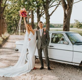 Megija: – Tā noteikti ir mana kāzu kleita (no zīmola Made with Love – red.). Es, pirmkārt, biju iedomājusies, ka vēlos pilnīgi citādāka stila kleitu, tomēr, pielaikojot kāzu salonā, šajā jutos tik sievišķīga kā nekad. Turklāt šī kleita bija ļoti ērta un ne mirkli neapturēja mani no garākām pastaigām, enerģiskām dejām, un pat ar visu garo asti iztaigāju Kārļamuižas dārzu, turpat esošo kumelīšu lauku un rasaino zāli naktī. Kleita noteikti tika izbaudīta un samīļota, turklāt visu ir iespējams izmazgāt!