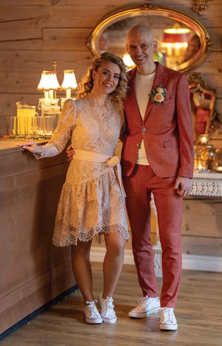 Savukārt Toms kā svētlaimīgu atceras brīdi pēc oficiālās ceremonijas Dagdas dzimtsarakstu nodaļā. Toms: – Ar laivām visi nokļuvām atpakaļ uz salas, novilkām glaunās drēbes un lecām peldēties. Vēlāk ar sastiķētām laivām, dreifējot pa ezeru, pļāpājām, smējāmies, emociju pārpildīti, un tam visam pa virsu uzdzērām vietējo latgaļu šmakovku. Jā, tik vienkārši! ››