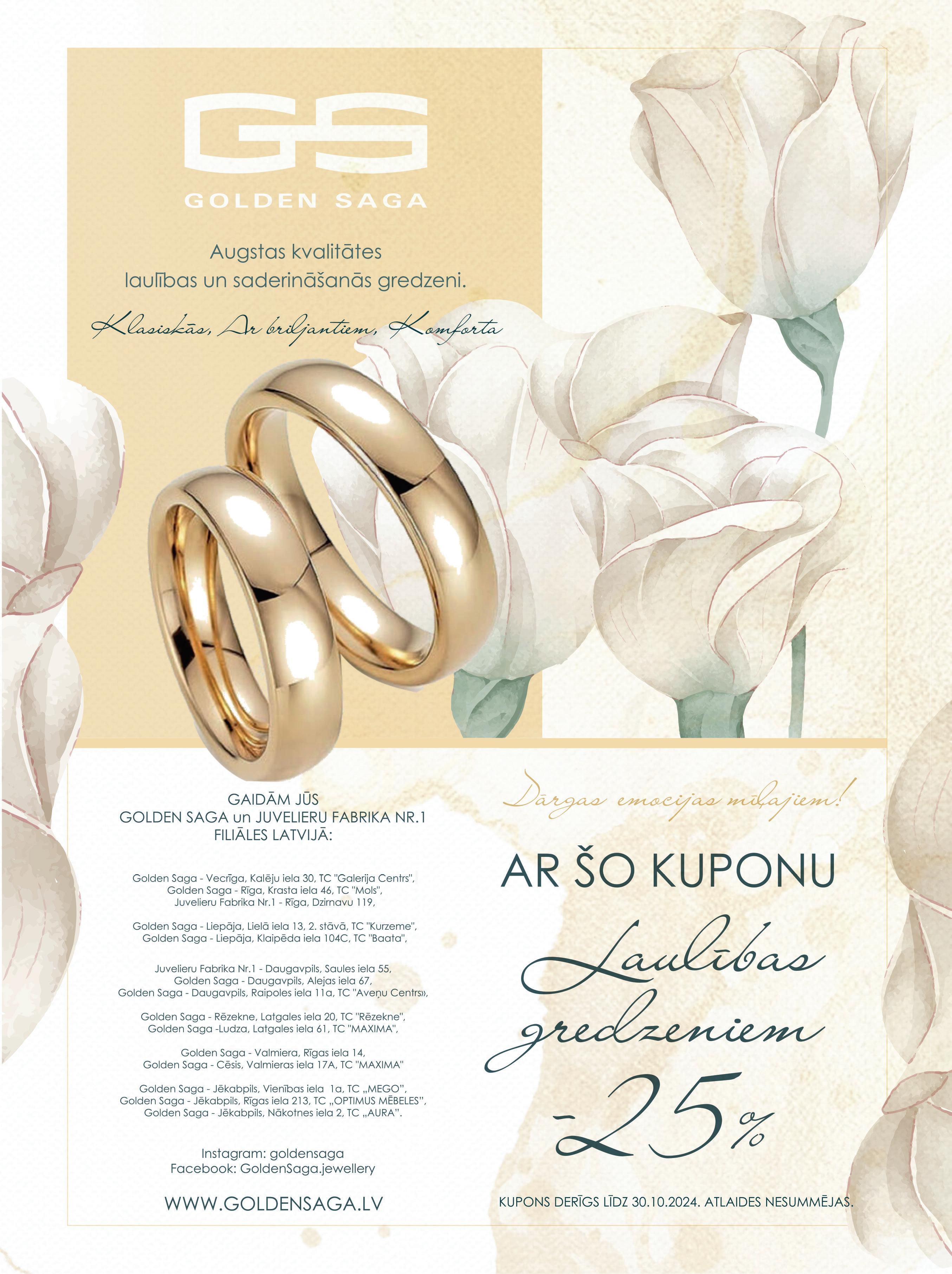 Bet vai zināji, ka zvaigznāju un debesu tēma ir lielisks rīks arī kāzu atmosfēras uzburšanai? 2024. gada kāzu trendi prognozē, ka šogad pasaulē debesu un zvaigžņu tematika būs viena no interesi raisošākajām jauno pāru vidū (72.–76. lpp.). Vai mūsu likteņi, tostarp satikšanās ar mīļoto cilvēku, ir zvaigznēs ierakstīta? Vai, ņemot talkā debesu zintis, varam atrast īsto partneri saskanīgai laulībai? Un kāpēc vērts vērsties pie astrologa, lai noteiktu piemērotāko datumu laulības slēgšanai? Par to visu uzzināsi sarunā ar pieredzes bagāto astrologu Andri Raču. Kamēr vieniem debesis saistās ar sapņainām, neizskaidrojamām lietām un nākotnes pareģojumiem, citiem tā ir tiekšanās pēc pilnības – sākot no personīgās pašattīstības līdz pat mūsdienu augsto tehnoloģiju sasniegumiem. Tā, iespējams, jau nākamgad NASA misija Artemis II dosies lidojumā apkārt Mēnesim. Dzinulis paplašināt savus horizontus mūs ir urdījis vienmēr, spilgts piemērs tam ir PRECOS vāka un intervijas varone – OX Drive līdzīpašniece Egija Gailuma. Par to, kā neapstāties jaunu izaicinājumu priekšā, par kaislību pret automašīnām un ātrumu, par Teslu un elektroauto kā mūsdienīgu alternatīvu kāzu dienai lasi intervijā ar iedvesmojošo uzņēmēju (18.–21. lpp.).