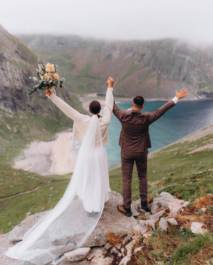 Rūta: – Padomājot, kur mēs tērējām savu kāzu budžetu, jāsaka, ka neko daudz mēs nepirkām. Tādas taustāmas lietas – kāzu kleitu, uzvalku un gredzenus. Kā labāko pirkumu es izceltu lidojuma biļetes uz Lofotu salām. Šī vieta jau sen bija viens no maniem sapņu galamērķiem. Tā nav tā lētākā vieta, kur ceļot, bet savām kāzām mēs atļāvāmies uzdzīvot un tērēt vairāk nekā savos ierastajos ceļojumos. Kad tad, ja ne savās kāzās! Tā kā nerīkojām lielizmēra kāzas, kas prasa zināmus ieguldījumus, naudiņu varējām novirzīt šim mērķim. Un tas noteikti bija katra centa vērts! Lofotu salas ir tāda pasaku zeme, katrs skats pārspēj iepriekšējo. Pirmajās dienās mēs burtiski braucām cauri salai ar visu laiku pavērtām mutēm un wow!, cik skaisti! tekstiem pēc katra līkuma. Tā ir stāvu kalnu un tirkīzzilu pludmaļu piepildīta paradīze.