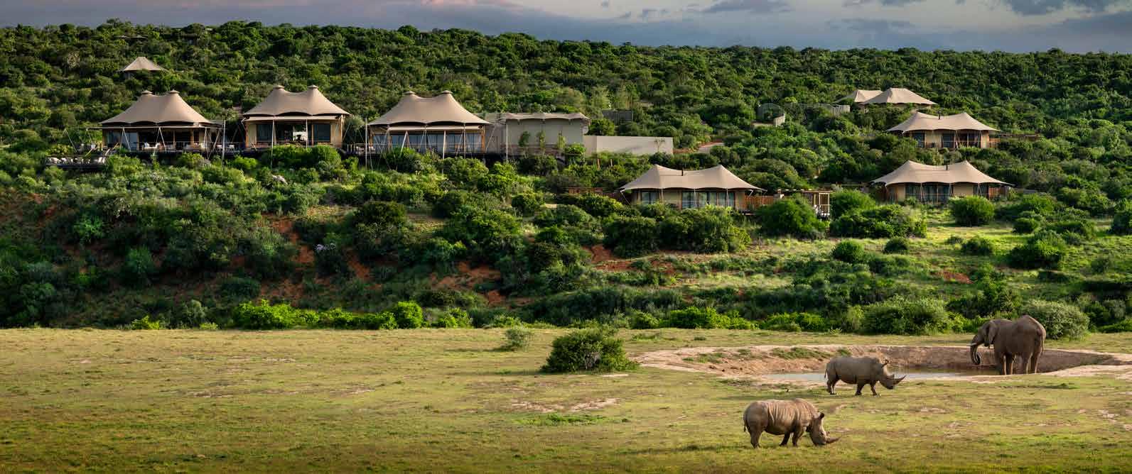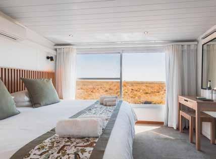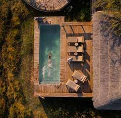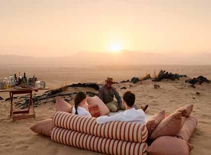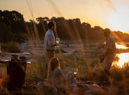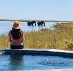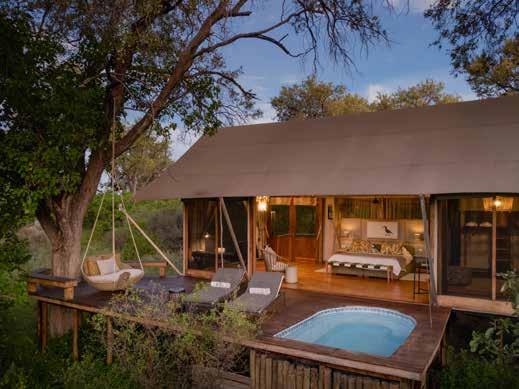 Enhance this natural tranquility with spa rituals rooted in African tradition. Indulge in soothing massages with locally sourced baobab oil, marula-infused body scrubs, or the healing warmth of ancient basalt stone therapy. Pair your wellness escape with starlit dinners featuring locally sourced farm-to-table ingredients, sun-drenched afternoons by the pool, and soul-soothing scenery all around. Want to go deeper? Practice yoga in a Bedouinstyle tent on the Makgadikgadi Salt Pans, reboot your health at a wellness retreat, or reconnect with nature on a walking safari in Zimbabwe. Whatever your version of self-care looks like, you will leave restored, rebalanced, and inspired.