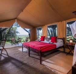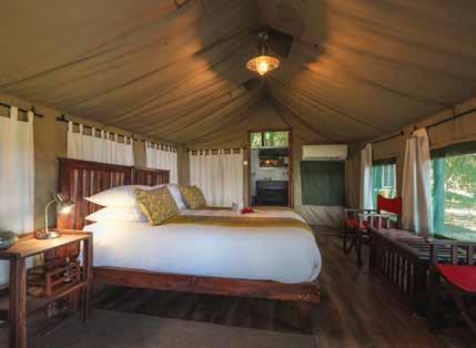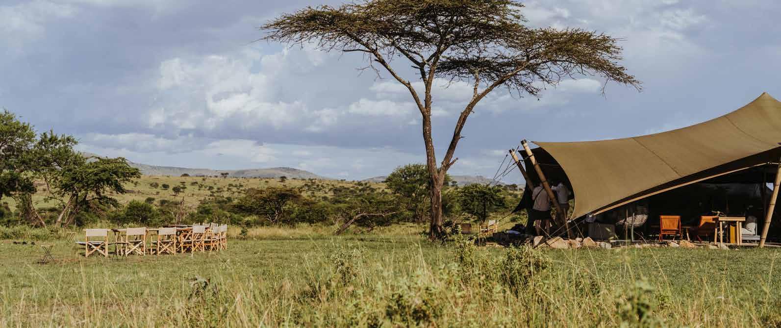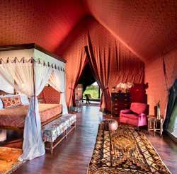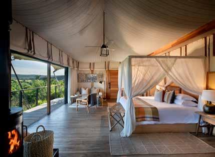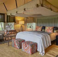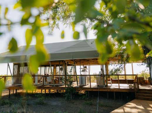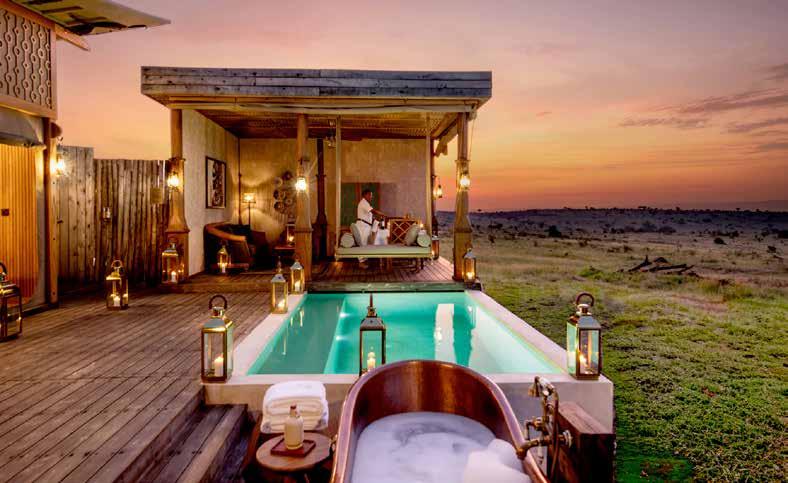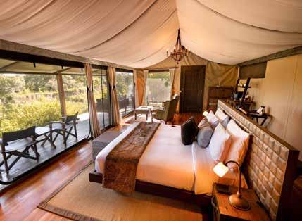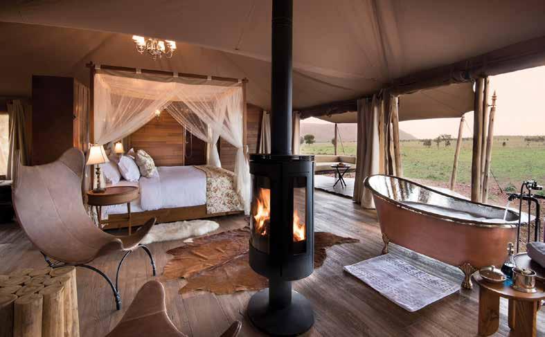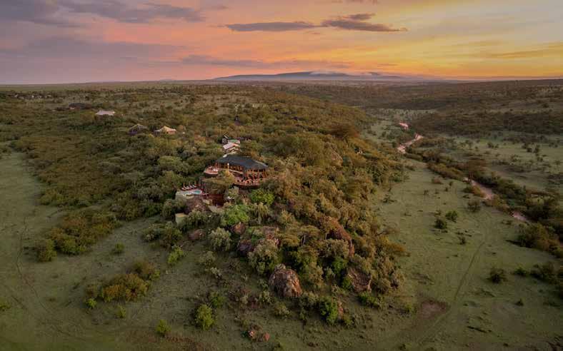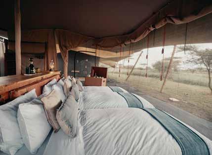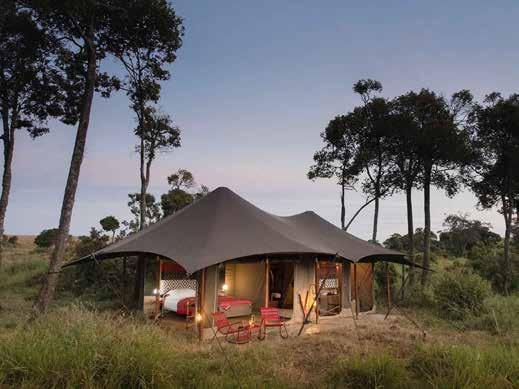 With just six tented suites, the camp blends raw adventure with refined comfort, drawing inspiration from the vibrant colors and bold geometrics of Maasai culture. Spacious decks, deep bathtubs overlooking the Mara River, and unfussy interiors invite stillness and serenity, while wellness treatments, yoga, and gym-in-a-bag kits keep the body moving. Completely off-grid, the camp runs on a customdesigned solar system and low-load LED lighting, reflecting its deep sustainability ethos. Designed for modern explorers seeking rare experiences in remote places, this intimate camp celebrates a strong sense of place and cultural richness.