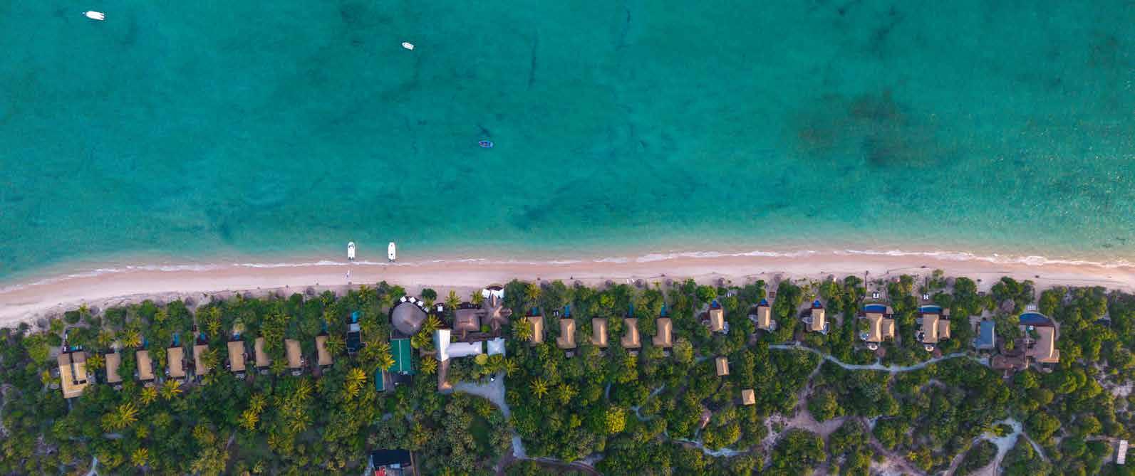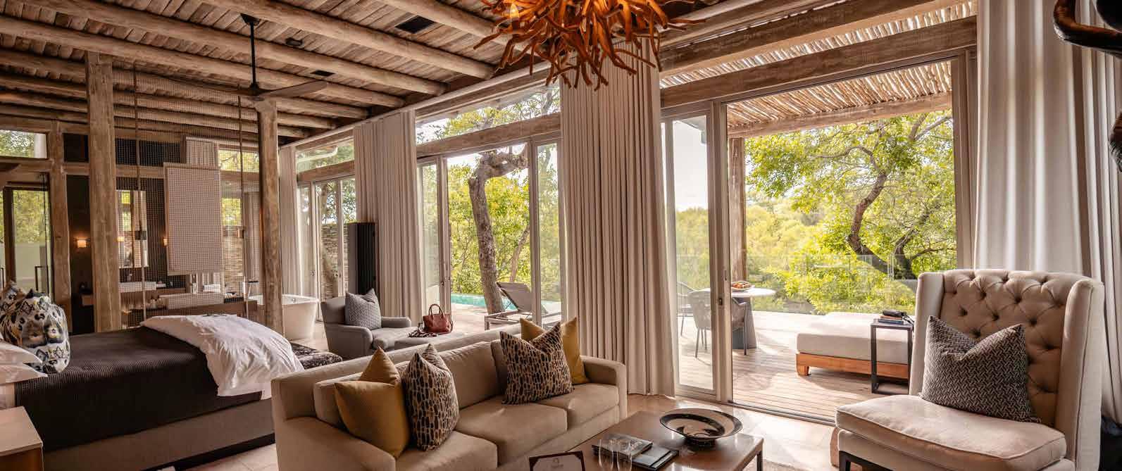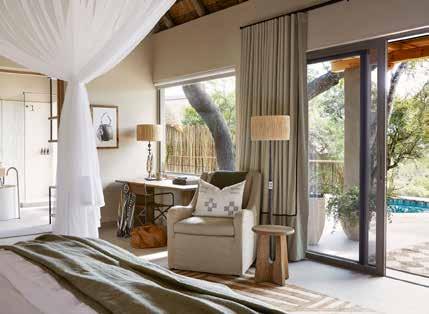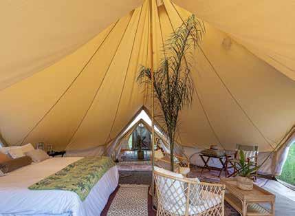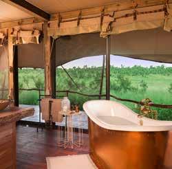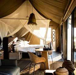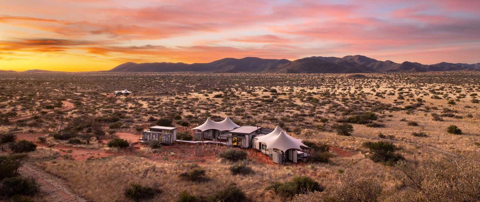 With just six tented suites, the camp blends raw adventure with refined comfort, drawing inspiration from the vibrant colors and bold geometrics of Maasai culture. Spacious decks, deep bathtubs overlooking the Mara River, and unfussy interiors invite stillness and serenity, while wellness treatments, yoga, and gym-in-a-bag kits keep the body moving. Completely off-grid, the camp runs on a customdesigned solar system and low-load LED lighting, reflecting its deep sustainability ethos. Designed for modern explorers seeking rare experiences in remote places, this intimate camp celebrates a strong sense of place and cultural richness.