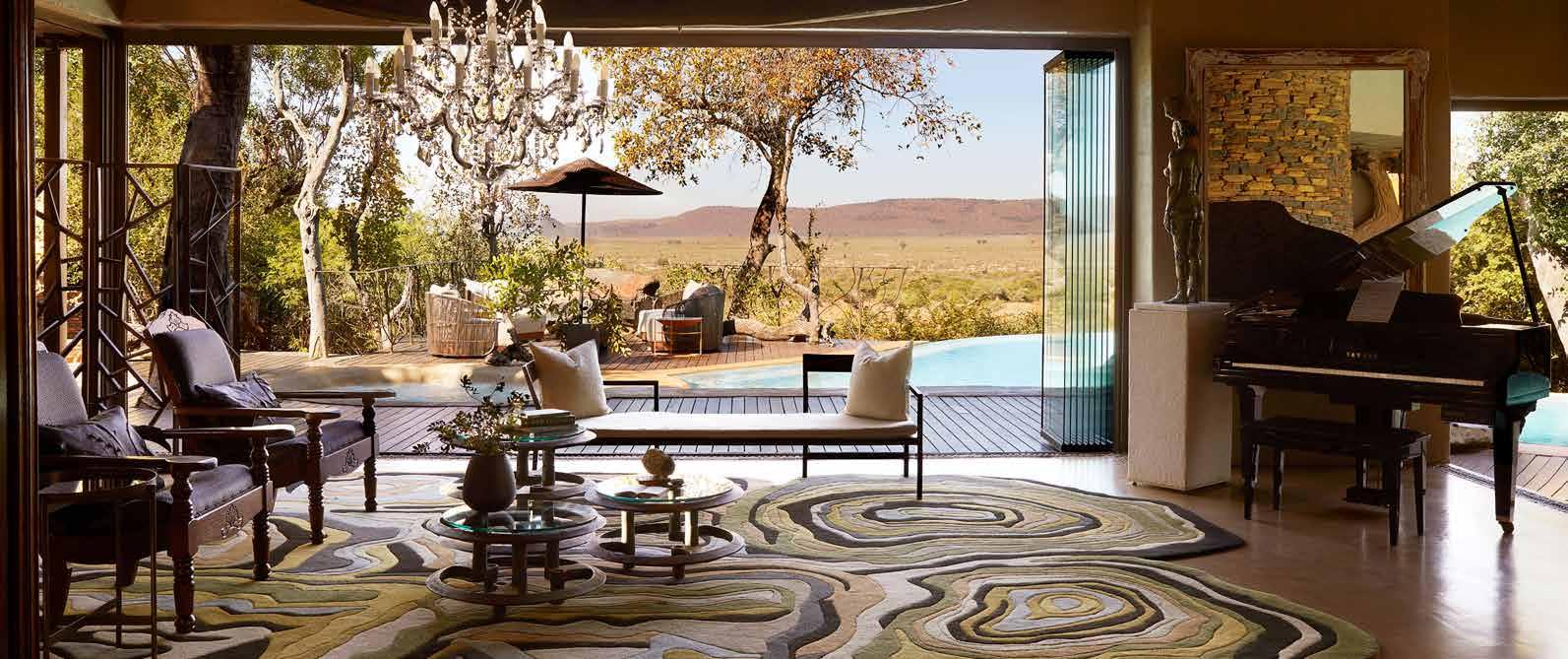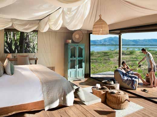 Set on the banks of the Ngobit River with sweeping views of Mount Kenya, The River Camp in Laikipia offers elegant interiors and immersive wildlife experiences in the heart of Ol Pejeta Conservancy. With just six double en-suite tents and two-family suites, the camp accommodates a maximum of 20 guests for an intimate and exclusive stay. Each tent features a private deck and both indoor and outdoor showers. Refined furnishings, curated artwork, and warm hospitality create an inviting atmosphere throughout the camp. Guests can enjoy lion tracking, guided bush walks, and night game drives, or visit the local community for meaningful cultural exchanges. Ol Pejeta is also home to the world’s last two Northern White Rhinos and offers rich educational opportunities for all ages. WWW.WILDER-GROUP.COM