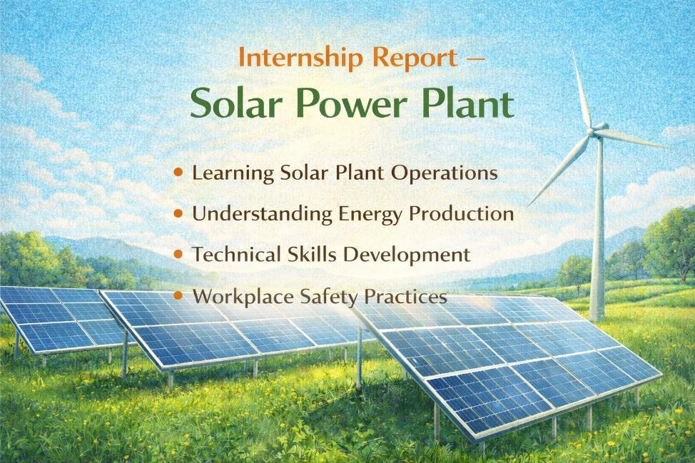 The internship at the Solar Power Plant provided comprehensive exposure to technical, operational, and environmental aspects of renewable energy infrastructure. From plant design and commissioning to performance monitoring and maintenance, every stage demonstrated the growing importance of Solar Energy in modern power generation.