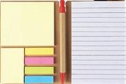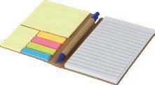 Velegnet notatbok med notatlapper. Mål: 14,2 x 10 x 11 cm. Trykk: Silketrykk på omslag.