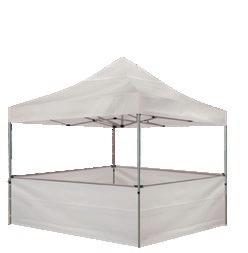 Teltet har et sterkt og lettvekts rammeverk i aluminium med sekskantprofil som settes opp på minutter, og en solid polyesterduk som gir god beskyttelse mot elementene. Velg mellom helvegger eller halvvegger. Alle varianter av teltet inkluderer ramme og tak med trykk, slik at du selv kan velge antall og type vegger for å tilpasse teltet til ditt arrangement.
