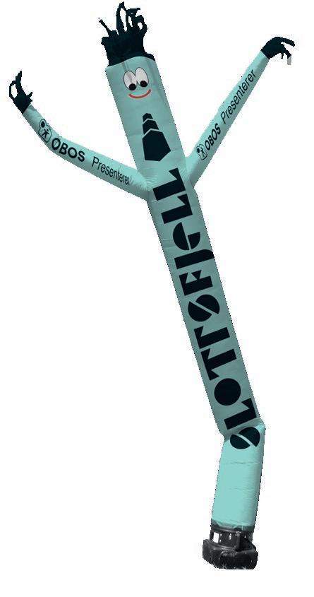 Himmeldanseren er svært mobil, lett å sette opp og pakke sammen, og kan tilpasses med fargetrykk over hele overflaten. Den er tilgjengelig i størrelser fra 3 meter til 7 meter, og 7-meters utgaven har to ben med en vifte i hvert ben, slik som på bildet under. Vi kan også tilby en 10 meter lang utgave, med kraftigere vifter, vennligst kontakt oss for pris og leveringstid.