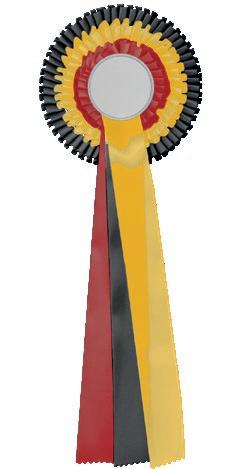Med tre rosettringer og tre bånd� Få egen tekst på bånd Fargeetikett eller sentermerke midt i rosetten
