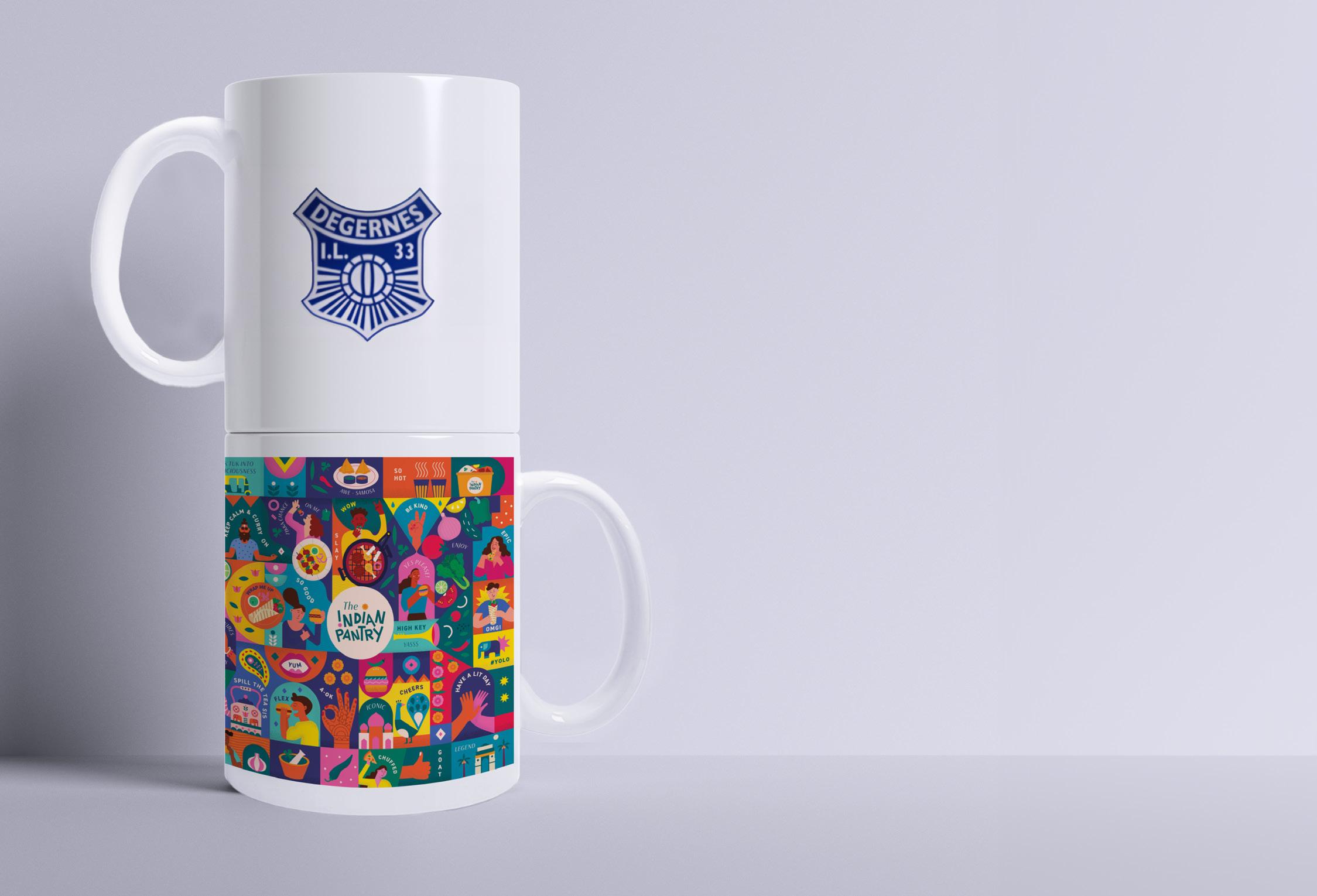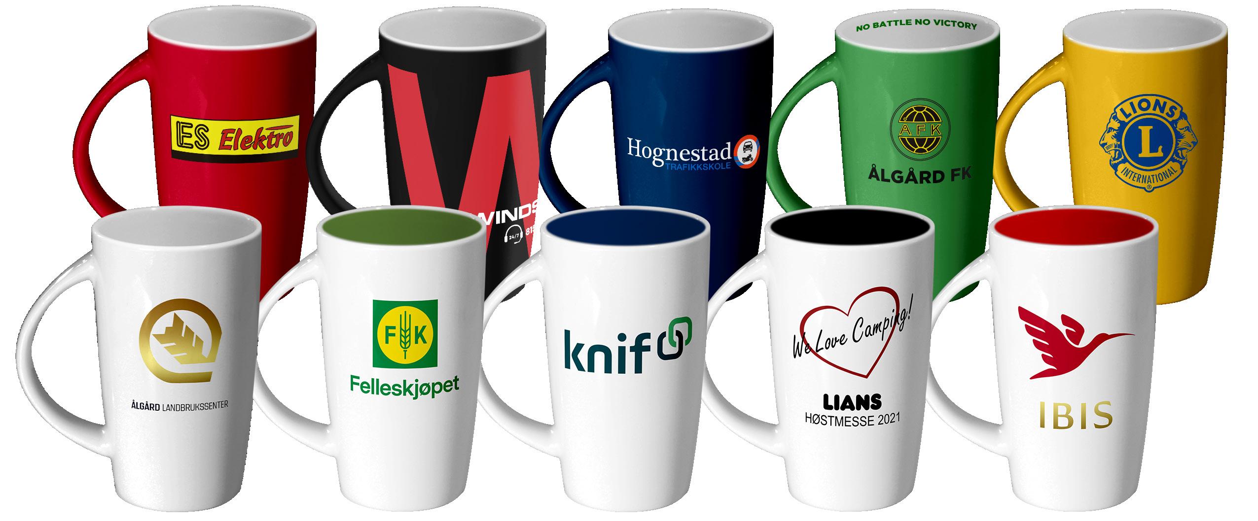 1 side 2 sider Innside Hank Underside Nummerering Unike navn på hvert krus Heldekor hank-til-hank