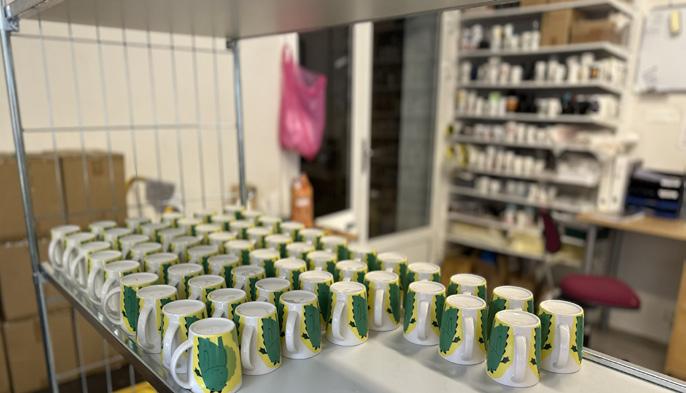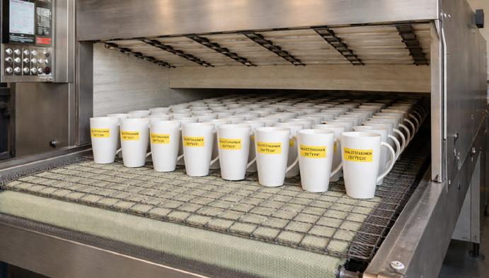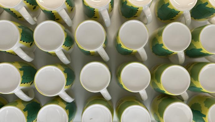 Gode håndverkstradisjoner ivaretas og i krusavdelingen legges hvert enkelt krus for hånd. Innbrenning skjer på om lag 800°