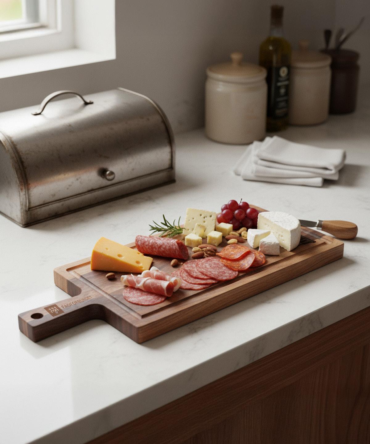 Solid fjøl, som skapt for spekemat. Egnet til både kutting og servering. Vi lasergraverer ditt motiv på fjøla.