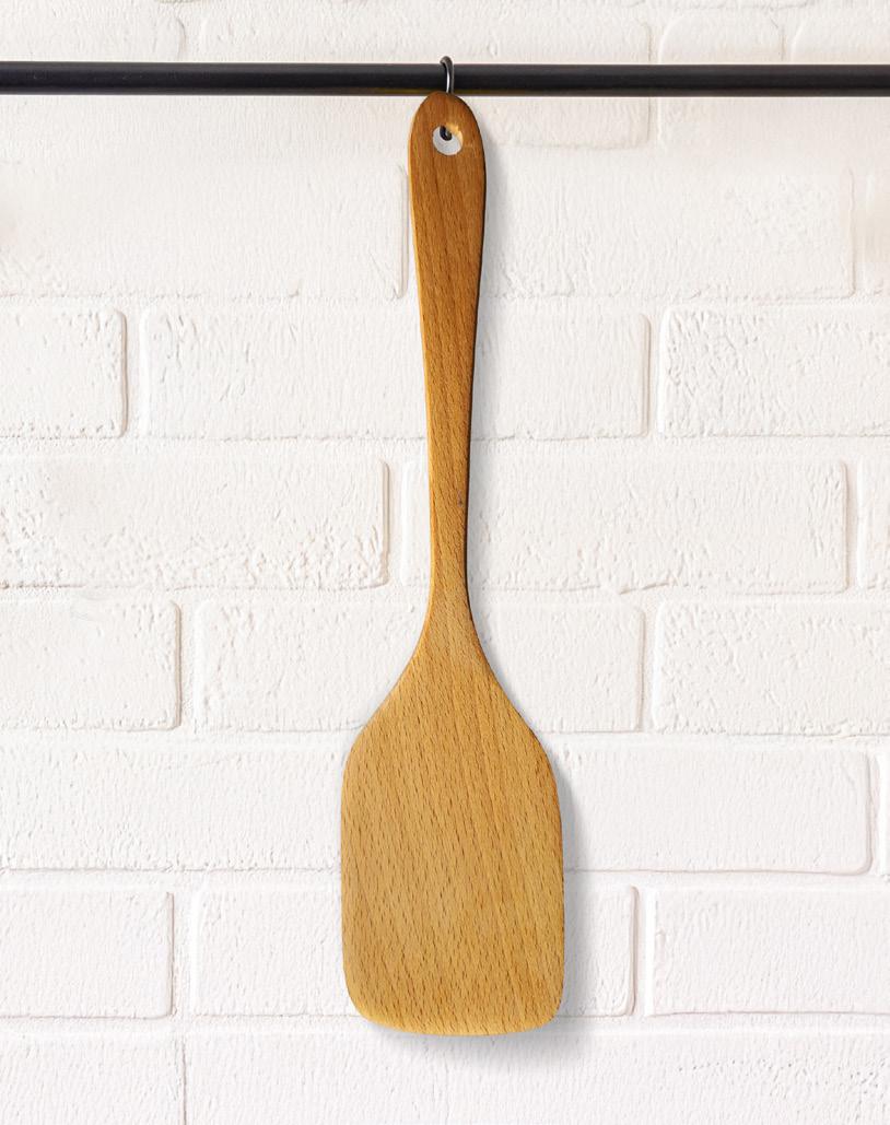 Denne redskapen i tre er allsidig nok til å håndtere en rekke oppgaver, fra grilling til steking og omrøring i kjeler. “Snaddersnapper” gjør det lett å flytte mat fra grillen til tallerkenen, eller røre i panner og kjeler. Leveres med lasergravering og pakket i drawstringbag i bomull.