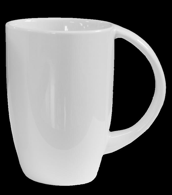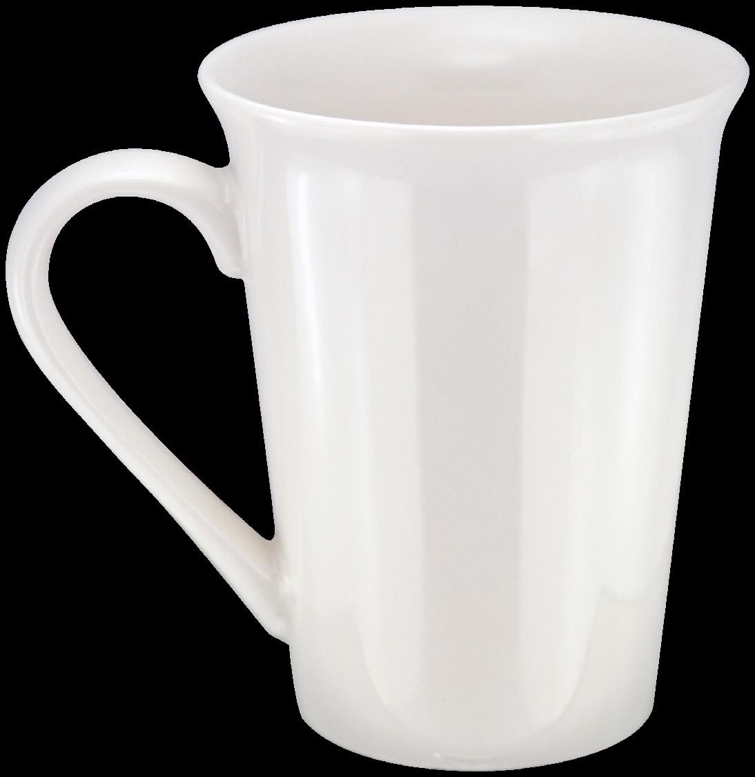 Det velkjente store kruset som passer like godt til kaffe som til te. Svært godt egnet for heldekor. Porselen med blank hvit glasur.