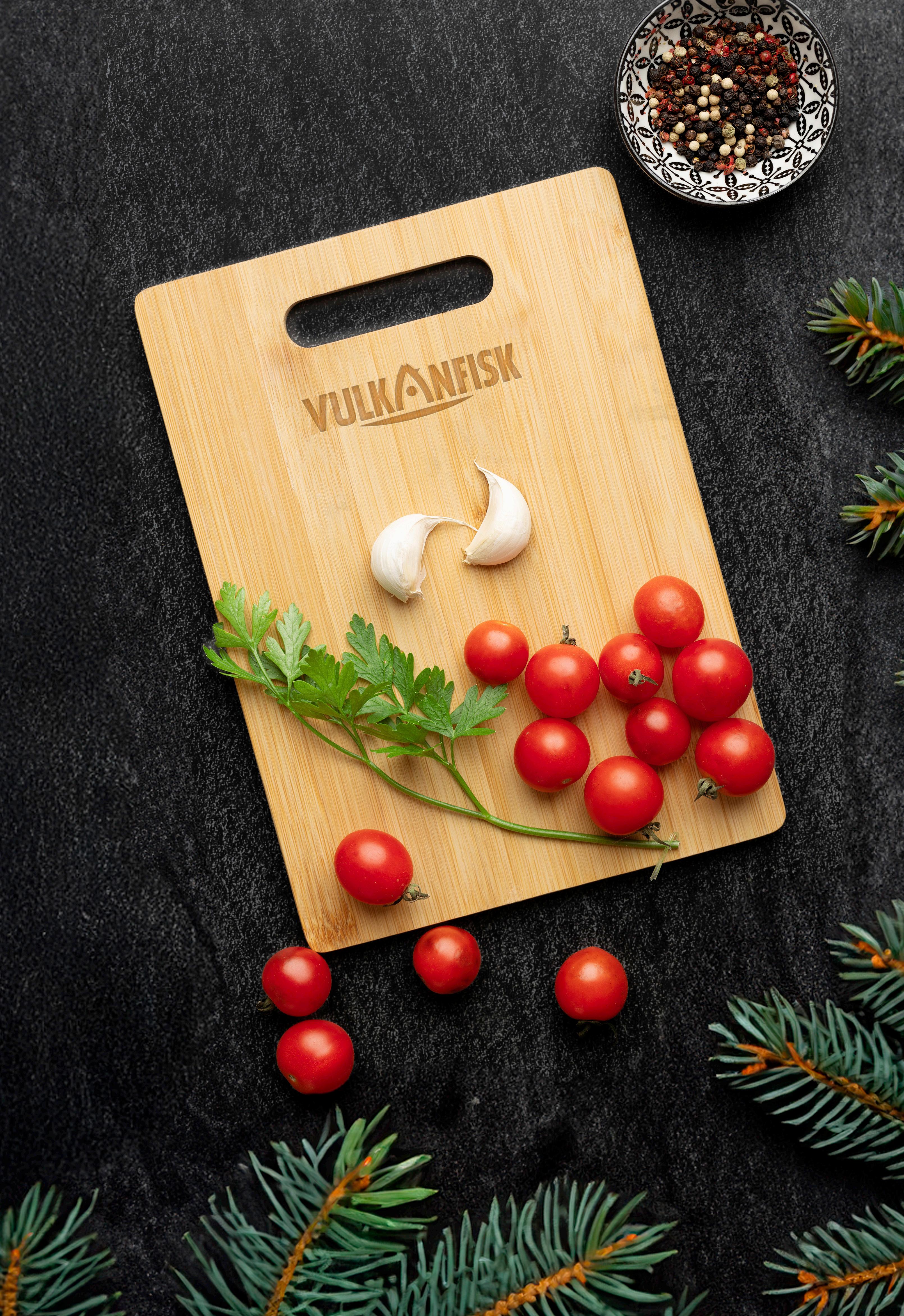 Bambusfjøl for tilbereding og servering. Vi lasergraverer ditt motiv på fjøla etter avtale.