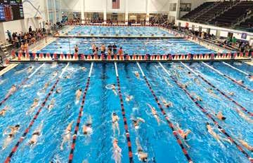 The Carmel High School Natatorium is a state-of-the-art aquatic facility featuring an eight-lane, 50-meter competition pool with a 10-lane Colorado Timing System and Daktronics scoreboard. It also includes a separate diving well with one-meter and threemeter boards, and a hydrotherapy area. The natatorium has hosted prestigious events, such as the 2025 World Aquatics Swimming World Cup.