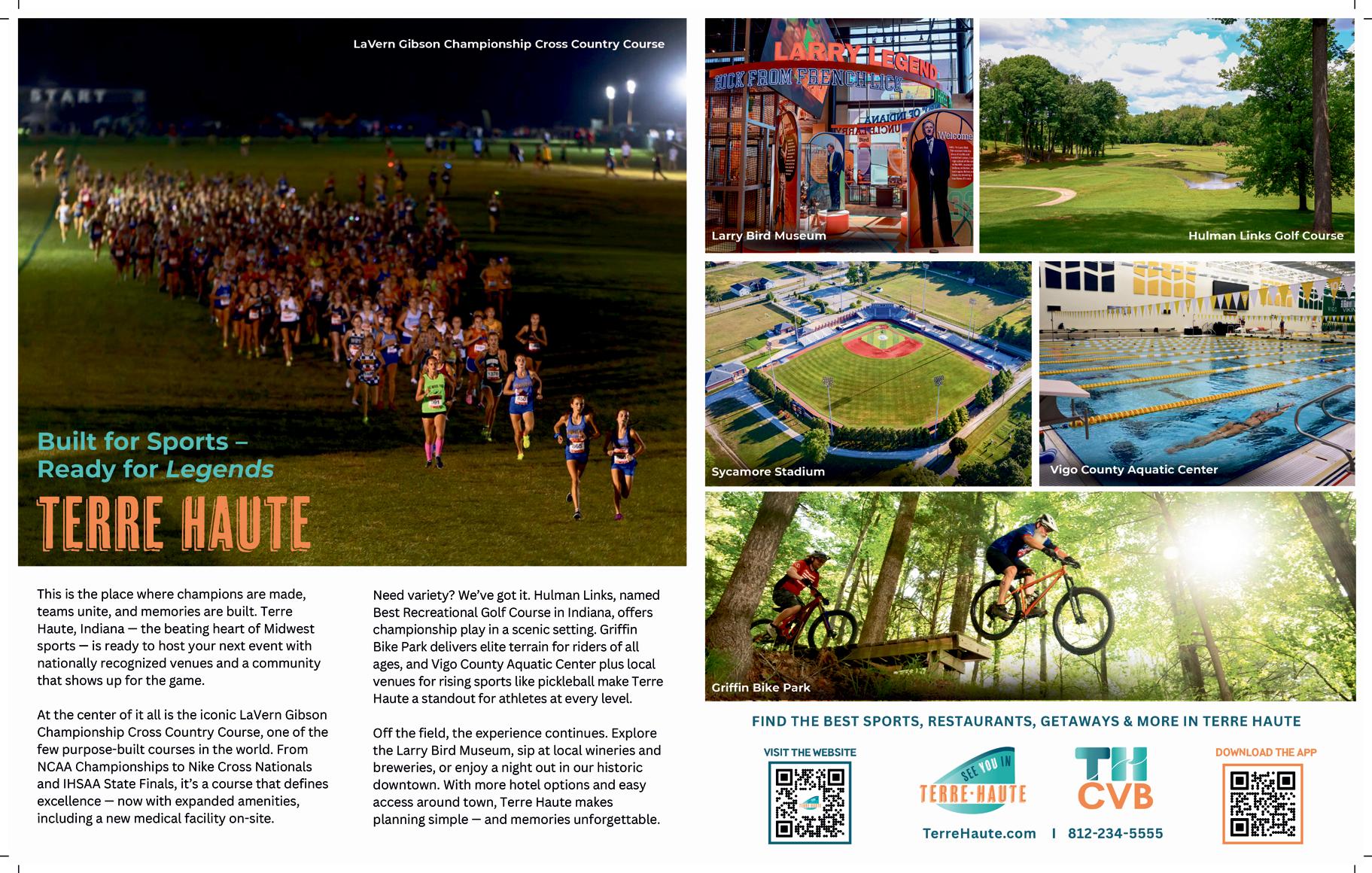 Renowned for hosting the NCAA Division I (2026) and Division III (2027) Cross Country Championships, Terre Haute draws top competitors nationwide. Accessible via major highways with ample lodging and budget-friendly options, it’s a seamless destination for teams chasing victory. The city’s legacy, tied to basketball icon Larry Bird, fuels its sports passion, while downtown’s vibrant dining and cultural gems like the Larry Bird Museum add charm.
