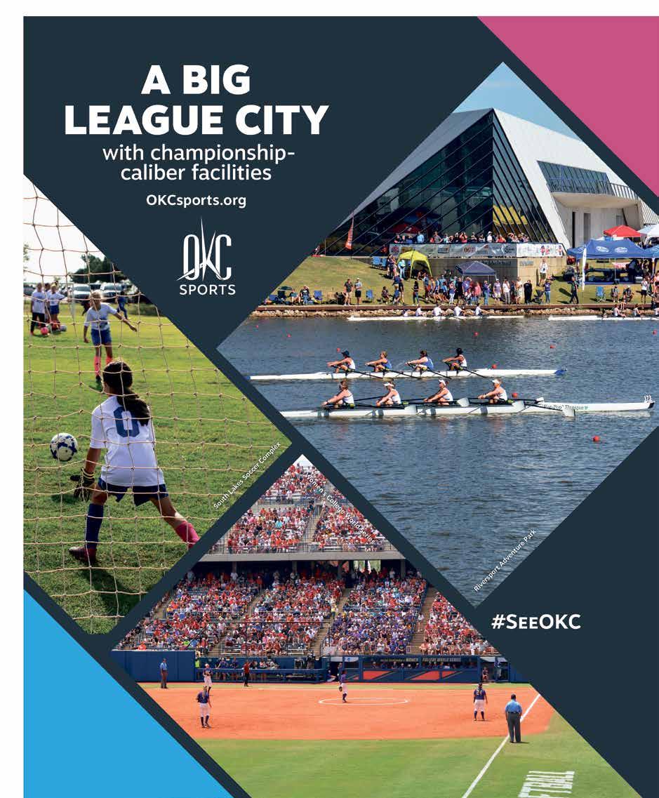 From its iconic Skydance Bridge , to historic hotels and nationally acclaimed restaurants, Oklahoma City is a big league city. The Modern Frontier is also a renowned sports city with dozens of premier facilities and the offi cial home for USA Softball. Pro teams also thrive, with the NBA’s Thunder, MiLB’s Comets, and PBR’s Wildcatters. The city’s remarkable growth mirrors the expanding horizons of its sports scene, a testament to the energy and excitement of Oklahoma City.