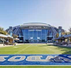 Located in Arlington’s Entertainment District, AT&T Stadium is home to the NFL’s Dallas Cowboys. Spanning threemillion square feet across 140 acres, the $1.3 billion, climate-controlled stadium can accommodate up to 100,000 spectators. Featuring a retractable roof, 300-foot steel arches, and a convertible turf system with 26 interchangeable surface panels.