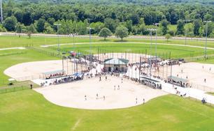 This complex features 16 Muscolit, multipurpose fields perfect for lacrosse and soccer, eight of which are fully fenced and equipped with irrigation systems, electronic scoreboards and shaded player benches. Planners can choose between four full-sized synthetic fields and scoreboard or four hybrid Bermuda fields. Between games, spectators can picnic at two nearby Gazebos with four seated areas.