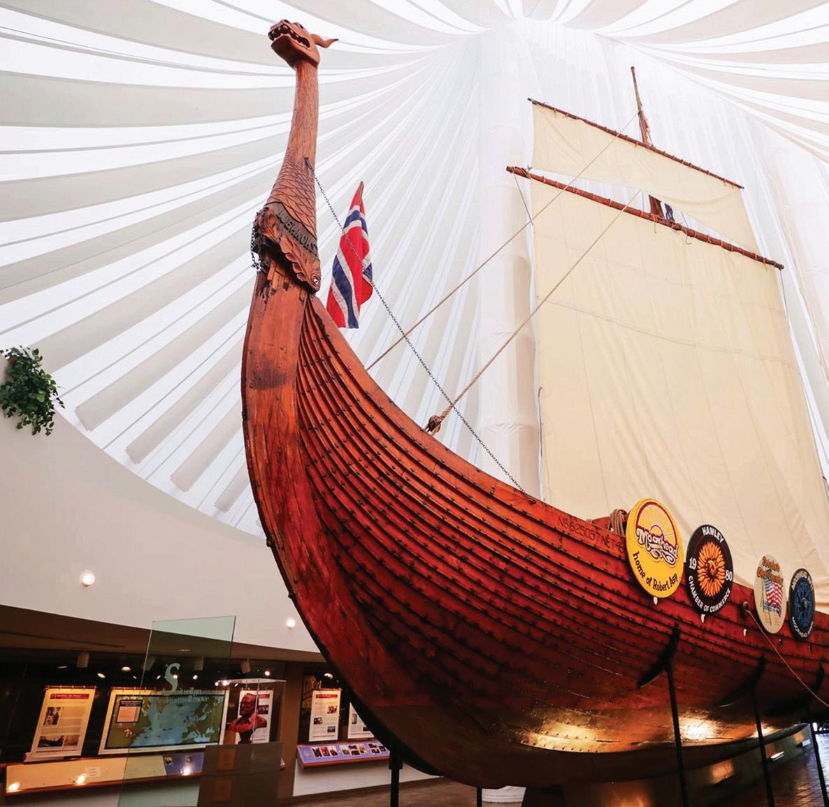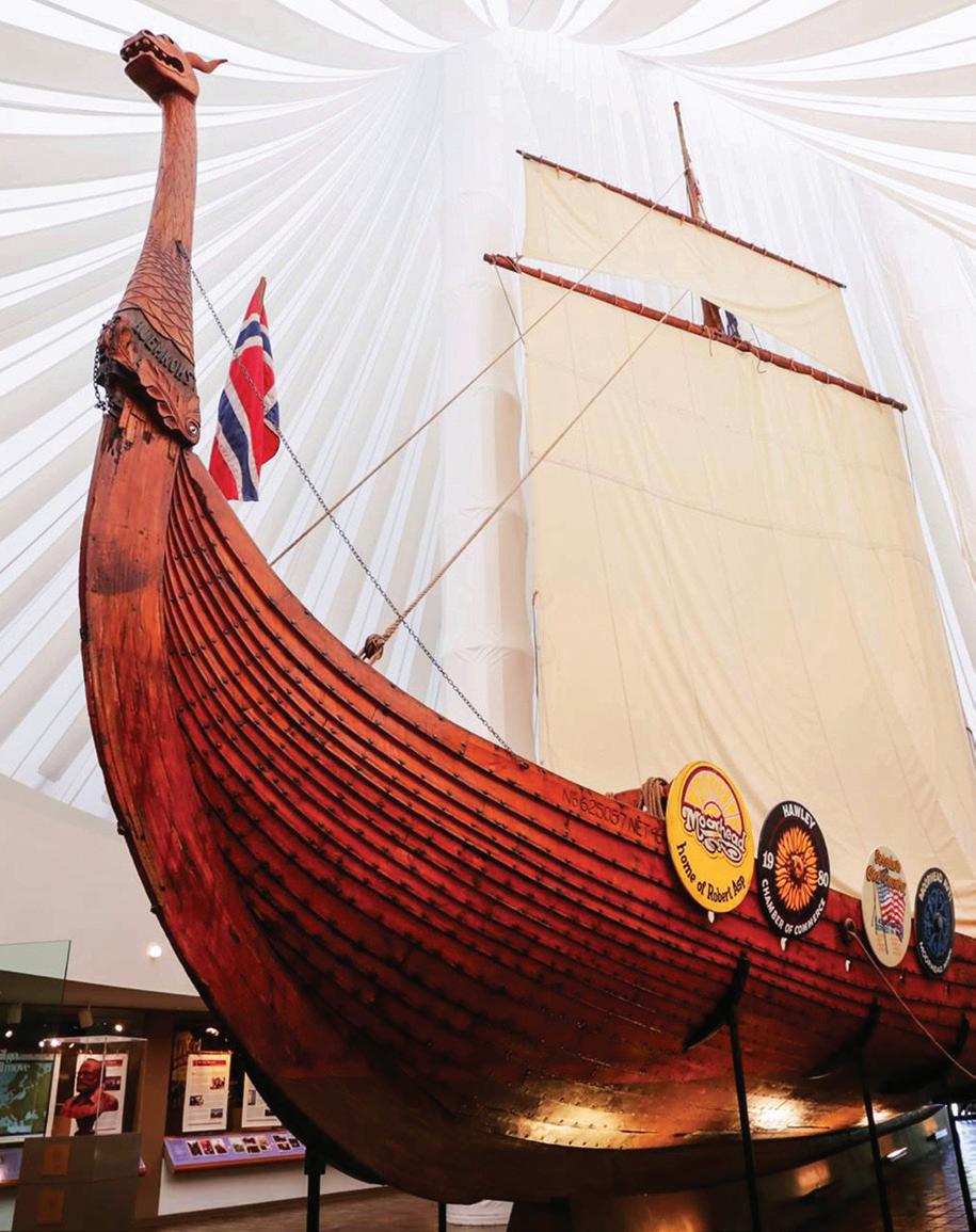 The first stop is the enormous Hjemkomst Viking Ship , a replica of a Norwegian burial ship. The ship was built in Moorhead, transported to Duluth, sailed to New York City and eventually sailed to Bergen, Norway. The ship was returned to Moorhead in 1983 and is a great representation of Minnesota’s Scandinavian heritage. On the grounds is the Hopperstad Stave Church Replica . Christian and pagan influences contribute to its unique design. Jake
