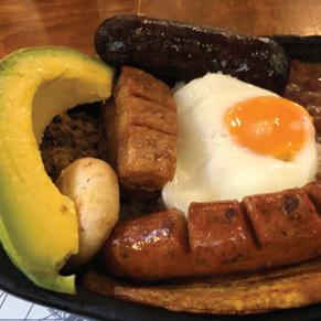 This is a platter of meats, rice and beans topped with a fried egg. Only for those with hearty appetites.