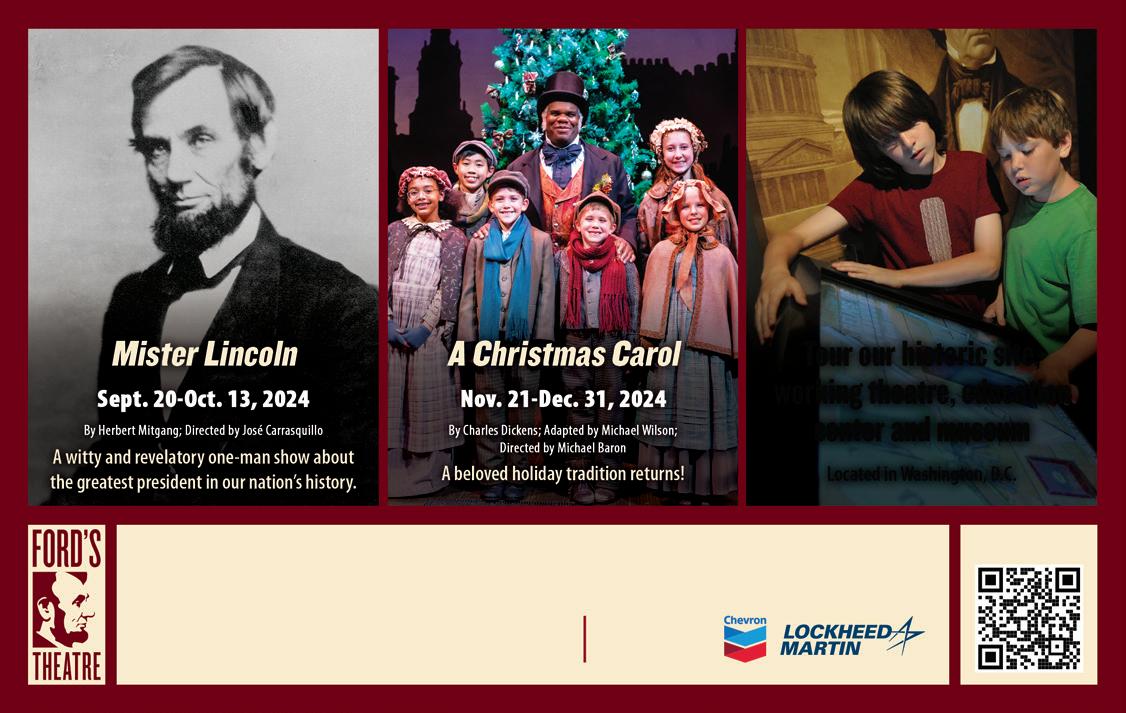 the theater is still a thriving, working theater, historical monument, world-class museum and education center. Featuring historical programming year-round, Ford’s Theatre is the premier destination to explore Lincoln’s legacy.