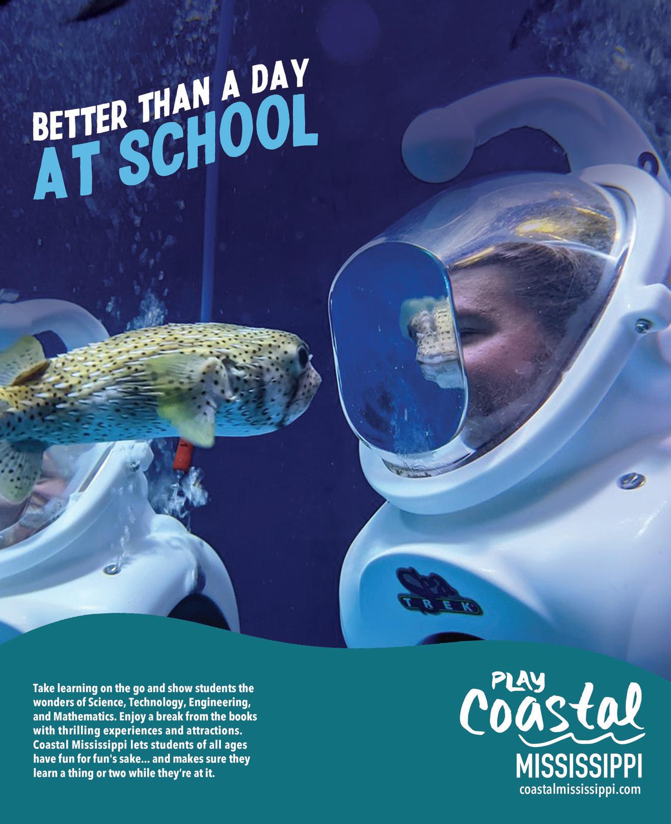 Next, visit Mississippi Aquarium, where students can explore a 5.8acre indoor/outdoor campus featuring fresh and saltwater habitats and over