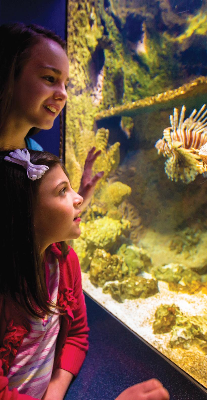 200 species of aquatic animals on an instructor-led tour. Visit Pelican Pointe Café for snacks and the Gulf Shop for unique souvenirs.