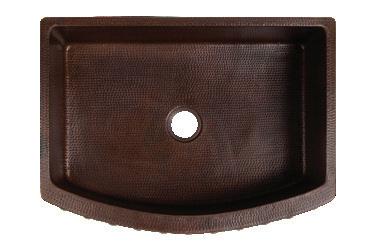 33" Hammered Copper Kitchen Rounded Apron 50/50 Double Basin Sink