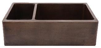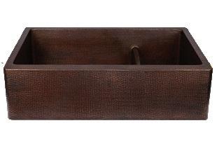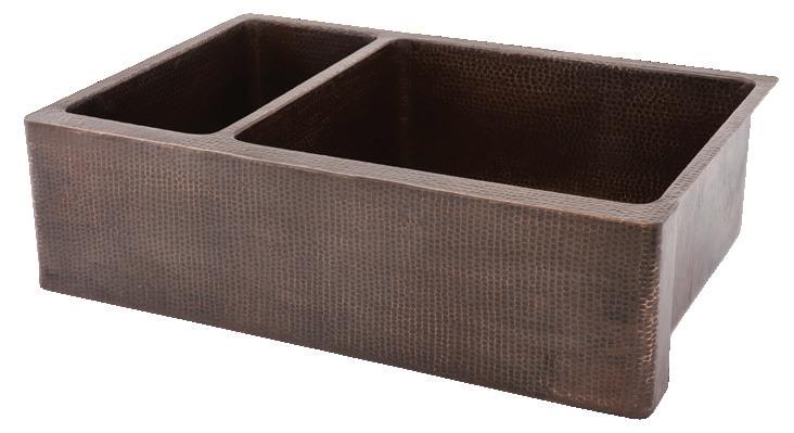 33" Hammered Copper Kitchen Apron 50/50 Double Basin Sink