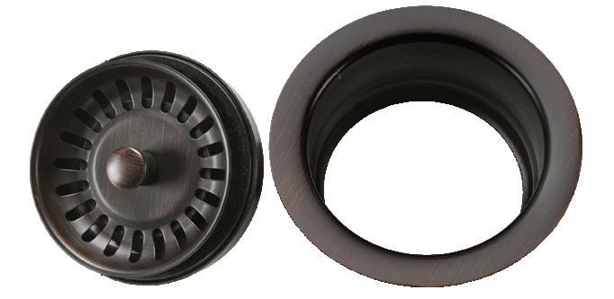 Drains D-130ORB (disposal) and D-132ORB (basket strainer) are compatible with all of our kitchen sinks. The spray wax protectant, W900-WAX, and color-matched installation silicone, C900-ORB, are recommended accessories for kitchen sink installation and maintenance. Additional information on page 56
