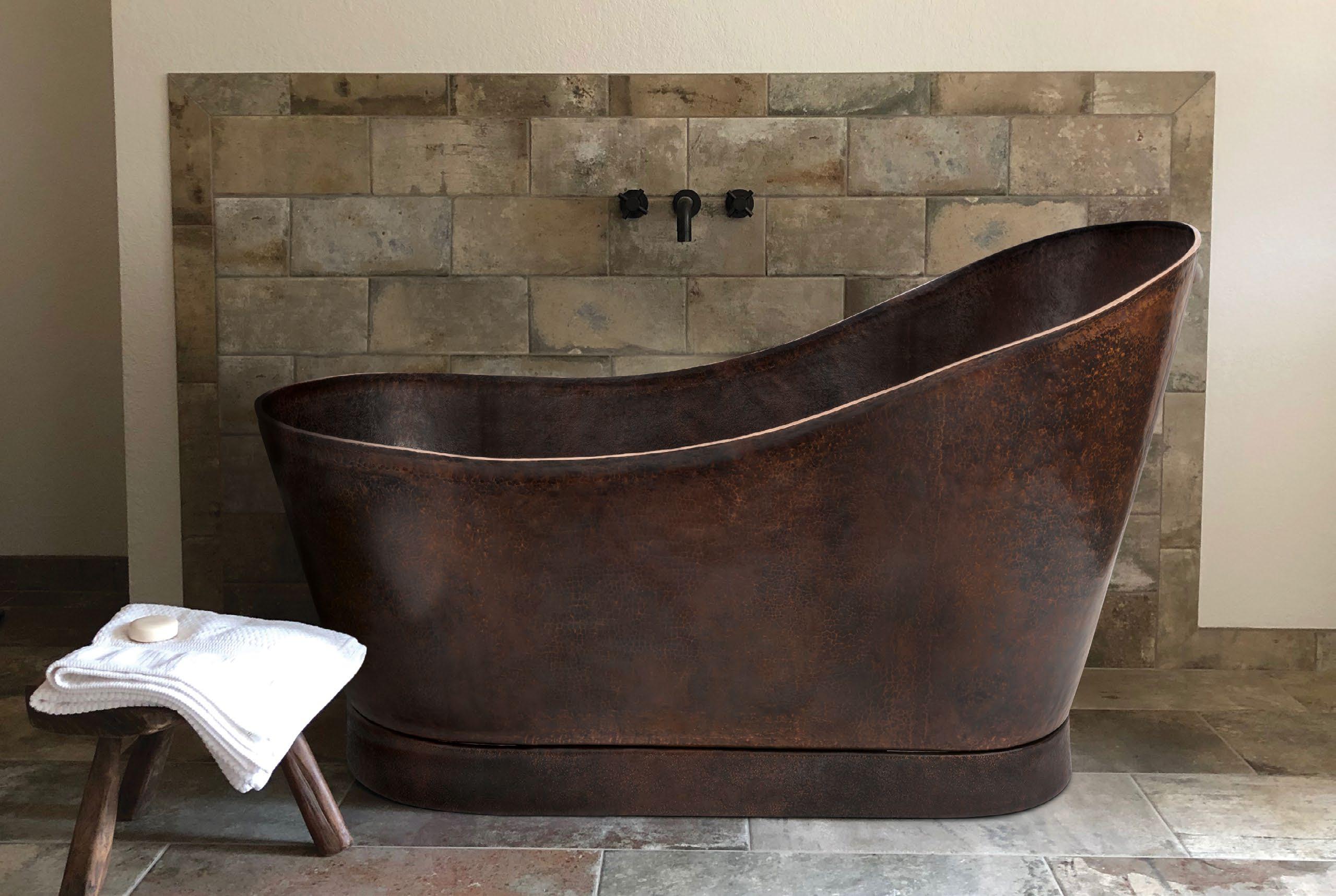 68” Half Moon Free Standing Copper Single Slipper Bathtub TFBTS68DB