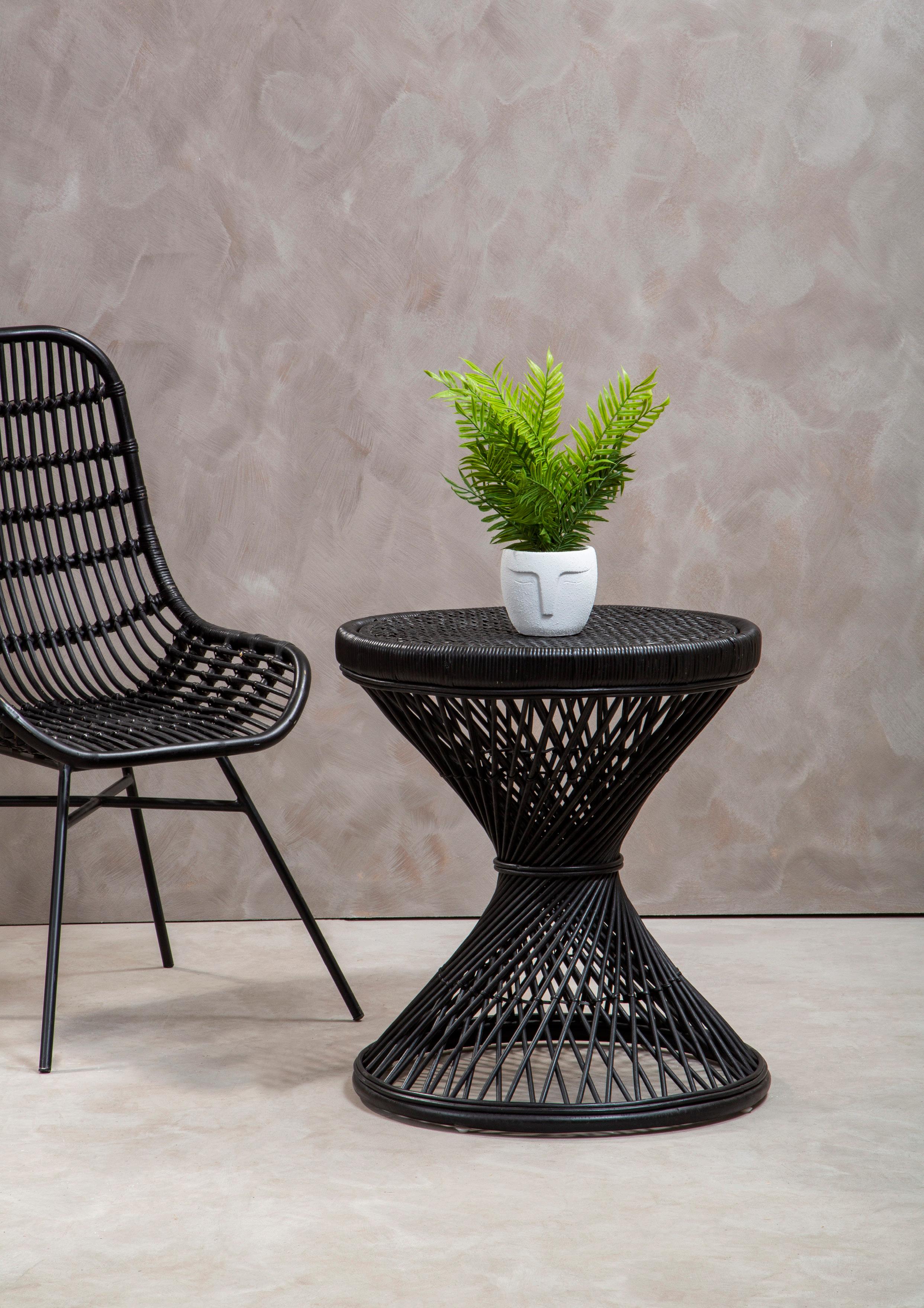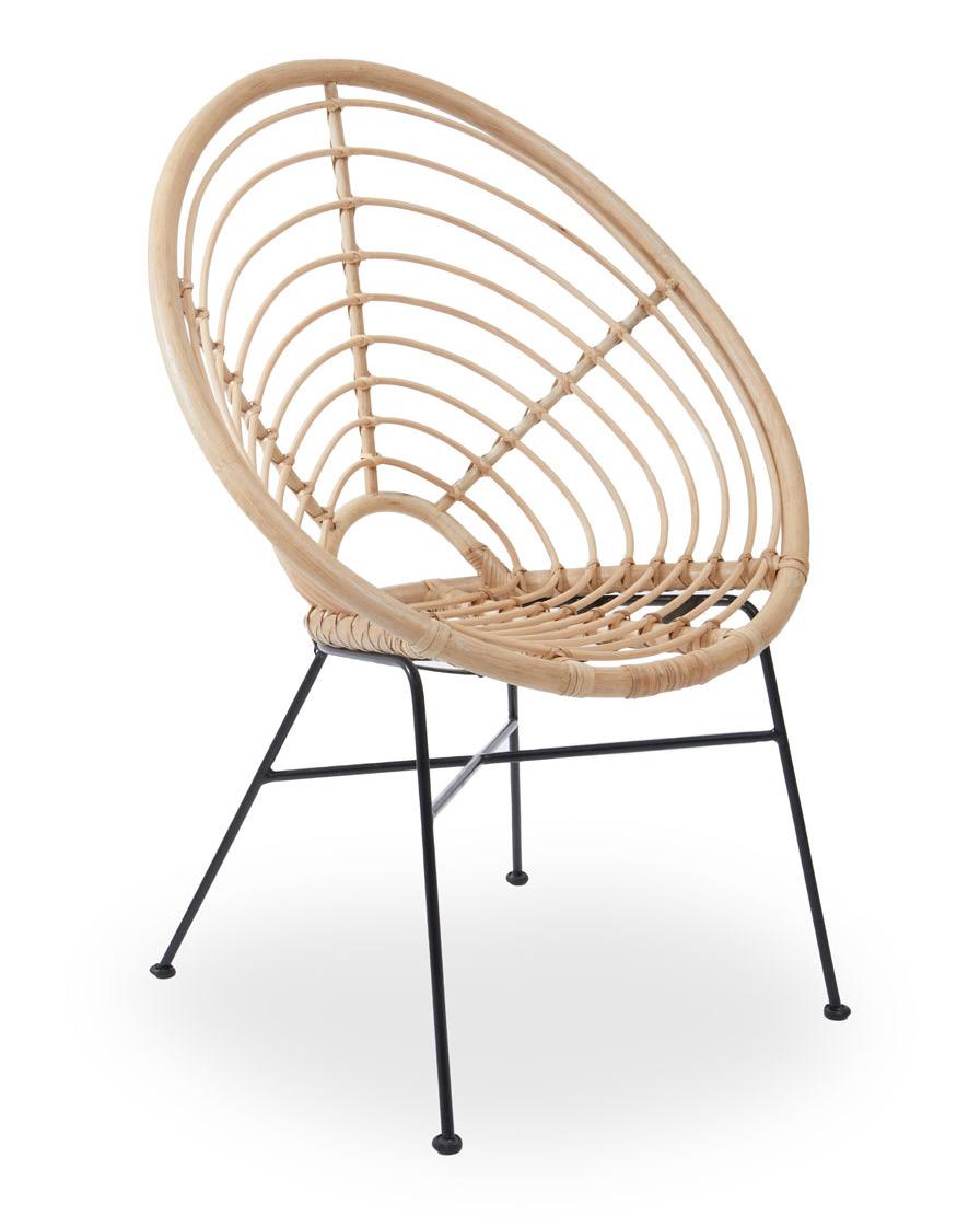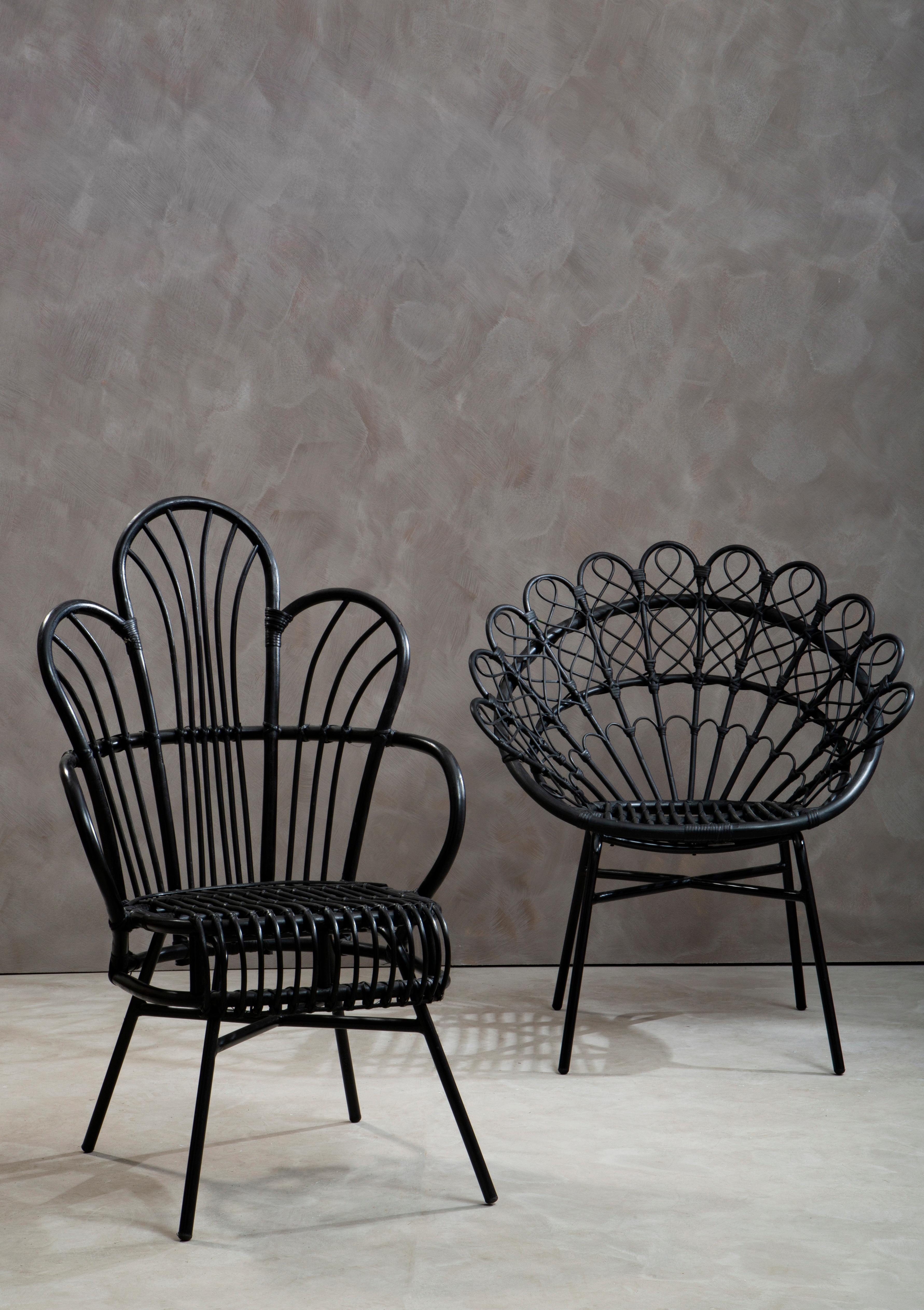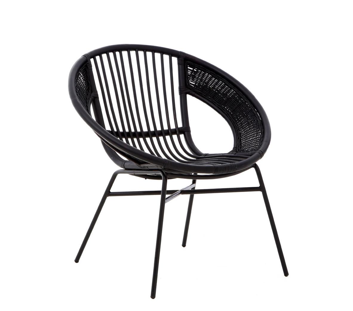 Java Black Natural Rattan & Black Metal Scalloped Back Chair