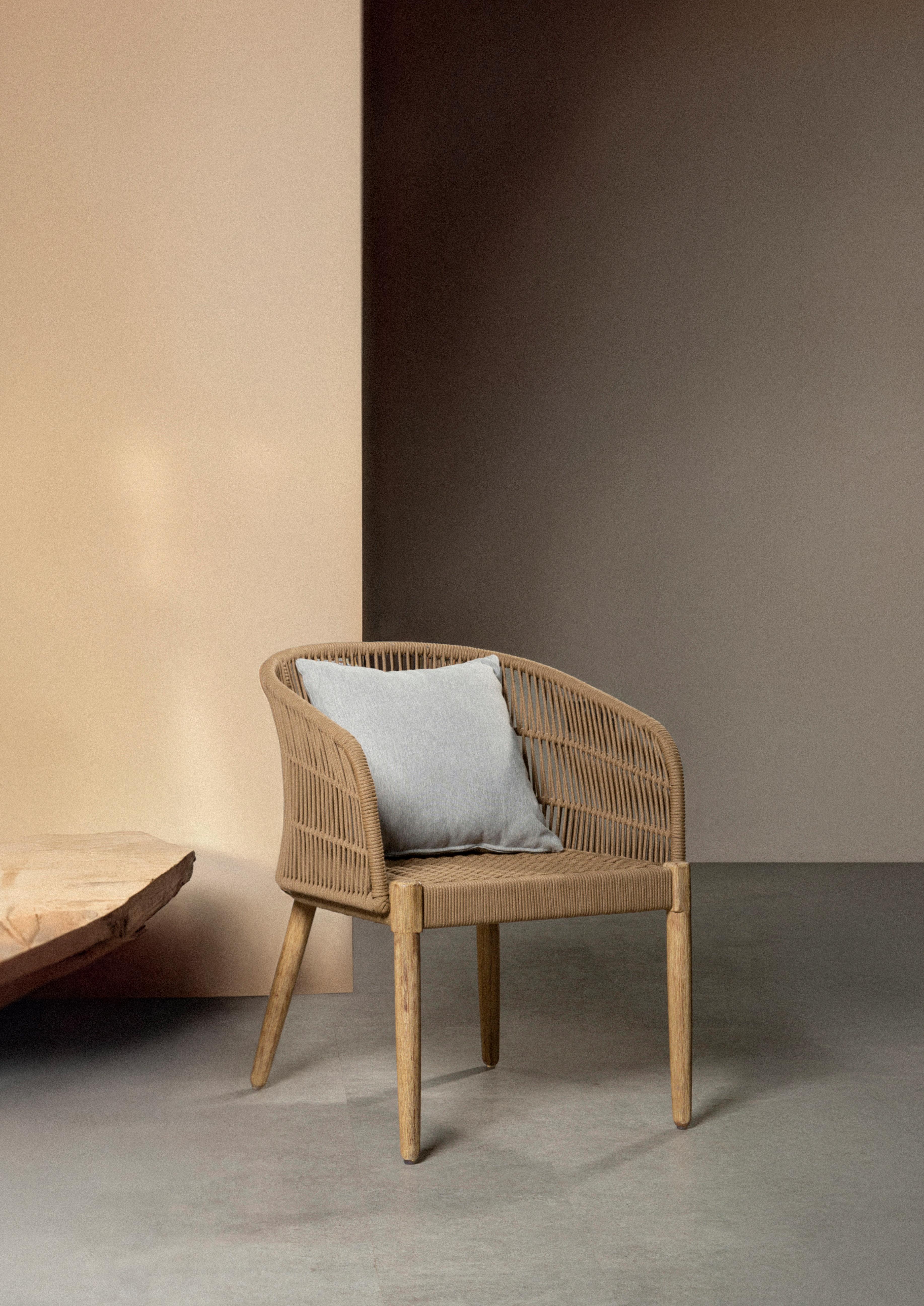 The Opus collection merges rustic character with contemporary design. Handwoven rope & wooden accents bring warmth & depth, making these pieces ideal for cultivating an inviting atmosphere indoors or out.