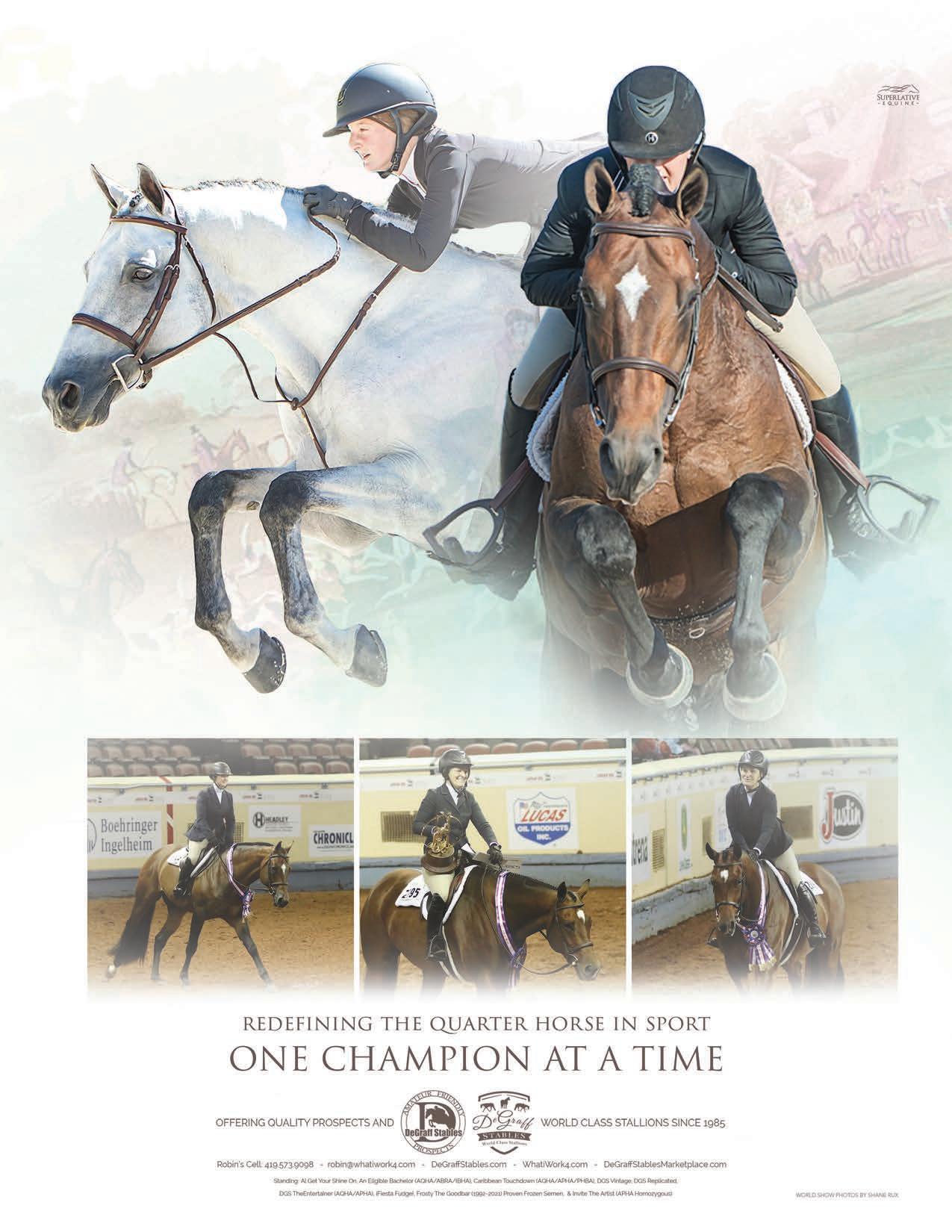 at the 2022 NSBA World Show in the Three-Year-Old Limited Non-Pro Western Pleasure and placing top five in the same class at the AllAmerican Quarter Horse Congress.