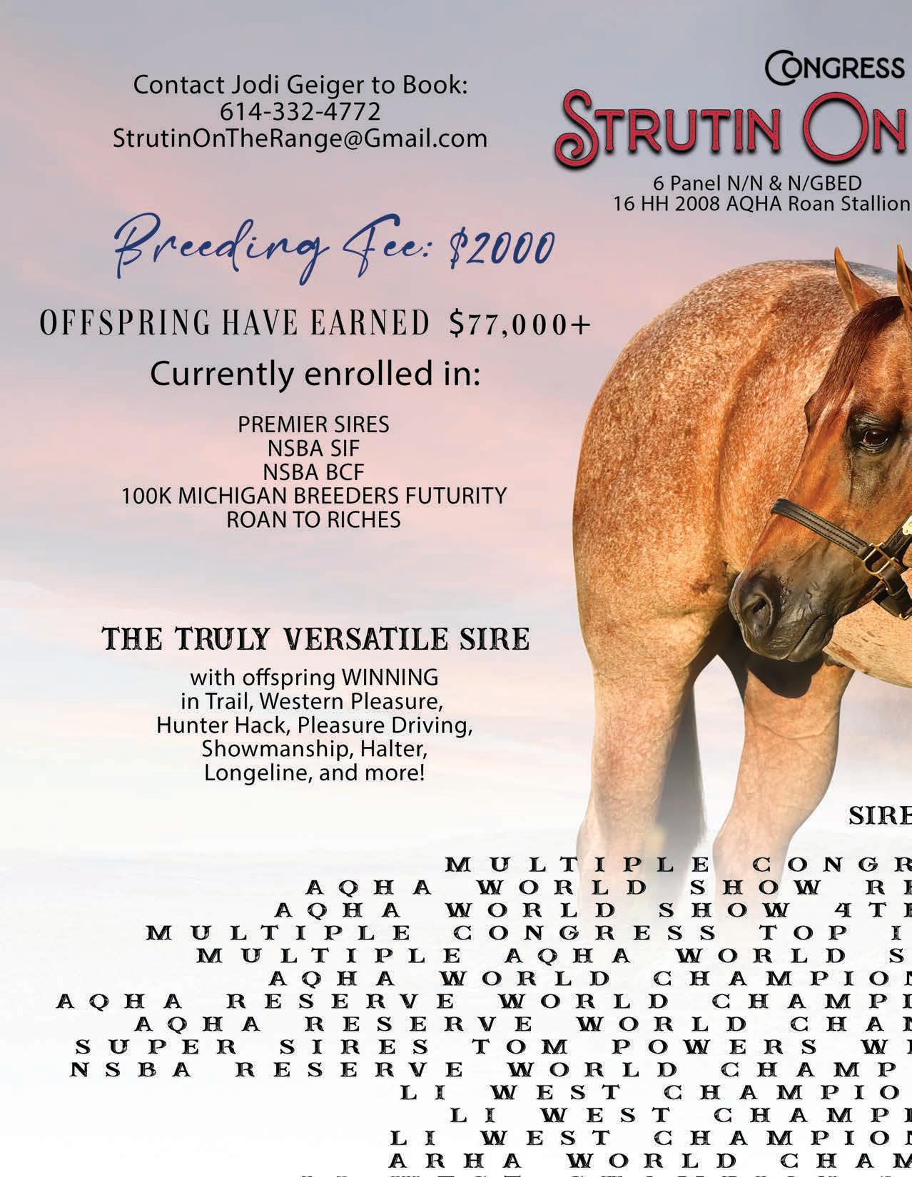 When she’s not busy managing the farm with her daughter, Danielson also enjoys showing in the western pleasure arena with her mare Hot Wrench, who is by Mechanic. “She’s a great mare for me,” says Danielson. “I really enjoy the time we get to spend at the shows. We have a great group we show with and being able to do this together as a family is so fun and rewarding.”