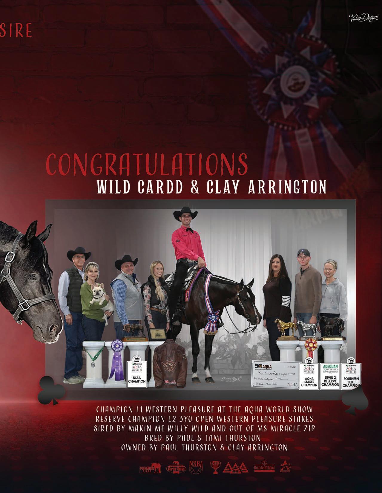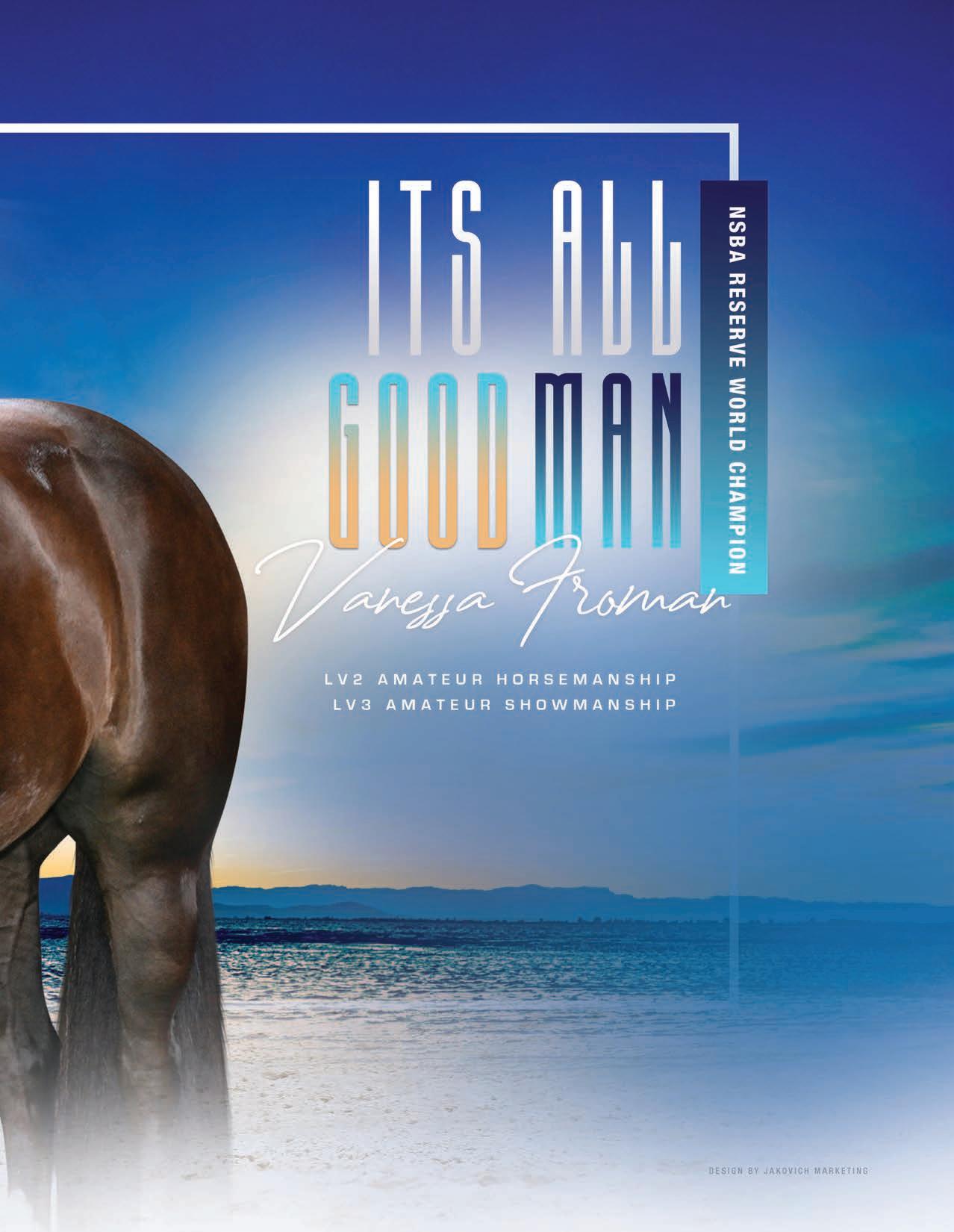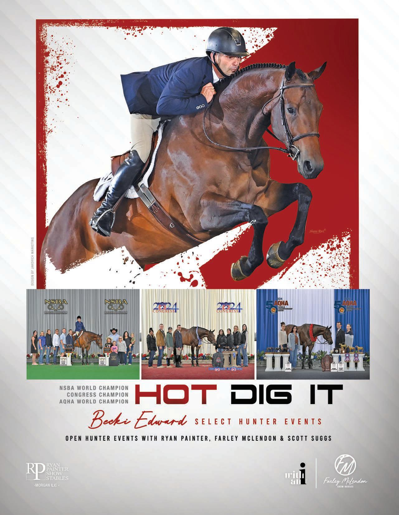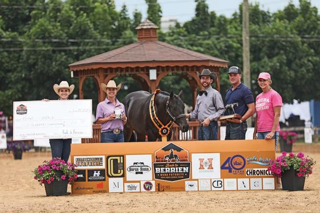 From there, the young horse took Danielson and the Zeitlers on a tremendous ride, winning NSBA World Championships in hunter under saddle in 2019 and 2020. As a two-yearold Outlaw and Judy Zeitler were NSBA World Champions in Two-Year-Old Limited Open Hunter Under Saddle and TwoYear-Old BCF Limited Open Hunter Under Saddle. The next year they won the Three-Year Old Open Hunter Under Saddle. Outlaw earned multiple futurity titles as a two and threeyear-old including unanimously winning the Three-Year-Old Open Hunter Under Saddle at the Tom Powers Futurity. In 2019, Outlaw won the AQHA World Championship in Junior Hunter Under Saddle.