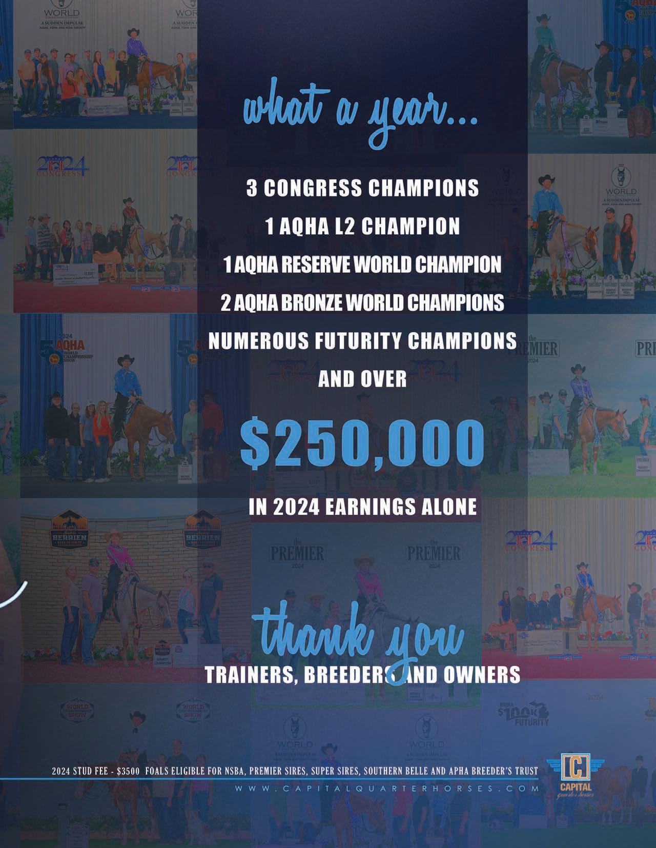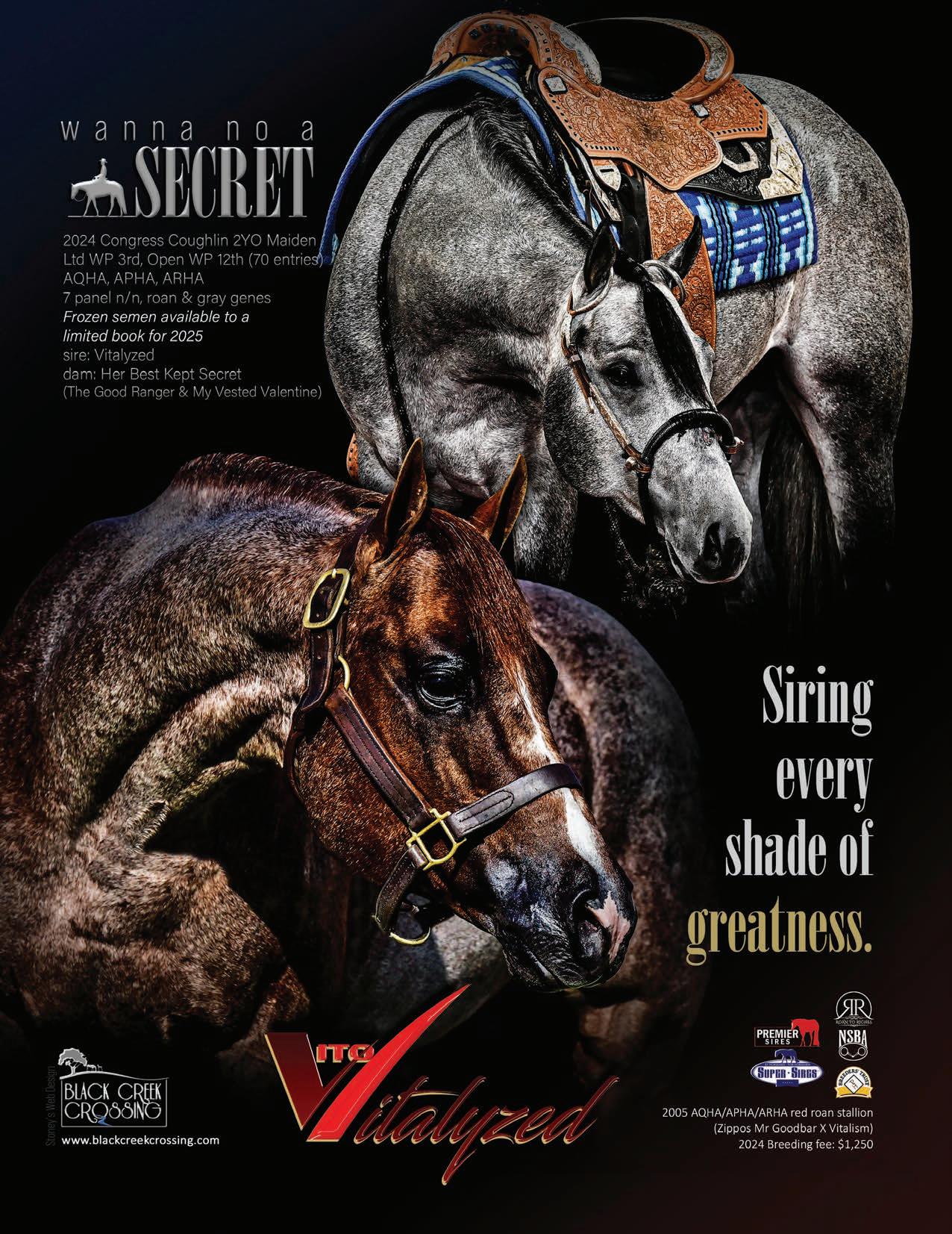 Now, the fun in Outlaw’s journey has shifted from watching him bring home to titles to cheering on his offspring. His first foal crop hit the show pen under saddle in 2024. “Now,” says Danielson, “we are really enjoying seeing his babies come into their own. He has a lot of exceptional babies out there and we’re super excited about them starting to show.”