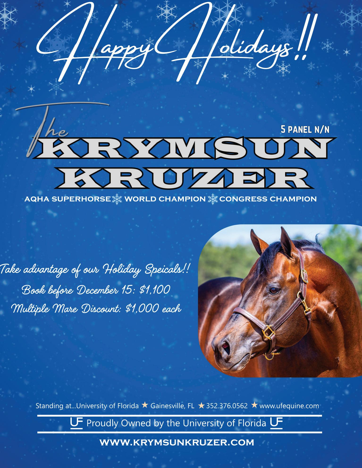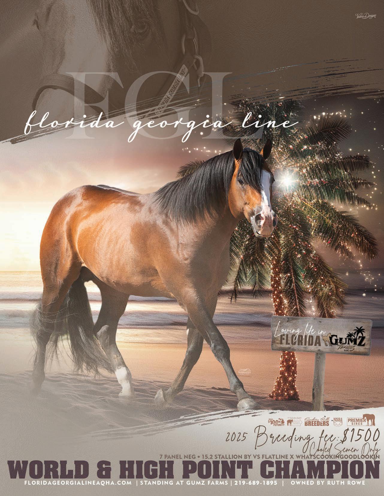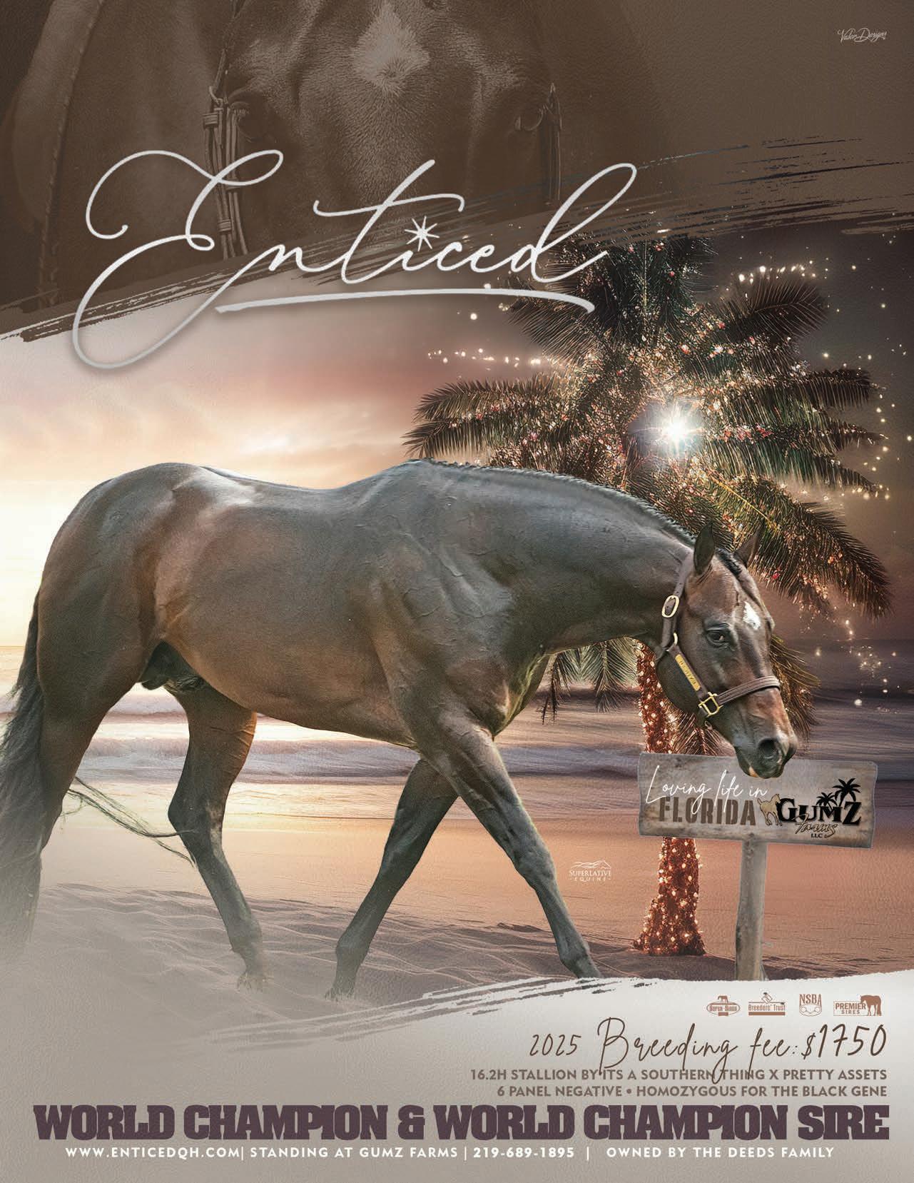 Danielson and her daughter Anya live on a 95acre farm in Ocala, Florida. The facility has several large barns that Danielson and Anya have improved since their time there. The property also features multiple large pastures and paddocks—making it the perfect oasis for the horse loving mother, daughter duo. Outlaw spends the summers with them on the farm when he’s done in the breeding shed. “He enjoys a very laidback life with us during the summers,” says Danielson. “He has a big stall and gets turned out during the day. We love that we’re able to have him here with us and groom him and spend time with him.” During the breeding season, Outlaw Enterprise stands at Pilot Knob Quarter Horses with Mike and Jan Hay in nearby Reddick, Florida.