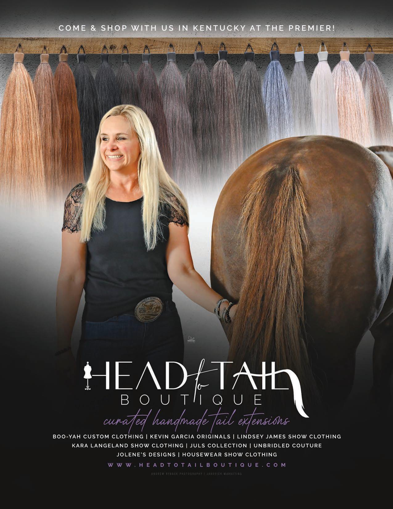Today, Kelley is the heart behind Head to Tail Boutique, a business that reflects both her keen eye for detail and her deep understanding of the horse show industry and what it takes to be competitive. True to its name, the boutique offers thoughtfully curated pieces for both horse and rider including custom and stock tail, forelock, and mane extensions, as well as designer apparel and show pads. Kelley proudly works with respected designers such as Boo Yah Custom Clothing, Kevin Garcia, Lindsey James, Unbridled Couture, HouseWear, and others whose craftsmanship and creativity align with her vision. Every piece is chosen with one goal in mind: helping riders feel confident, prepared, and proud when they step into the pen.