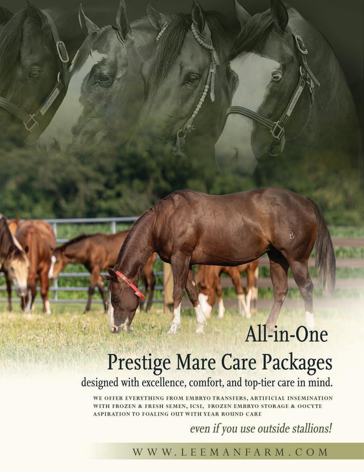 process captivated her. “I loved going to the stallion farms,” she says. “Talking to the stallion managers, studying the horses, trying to find the perfect match—it all mattered.”