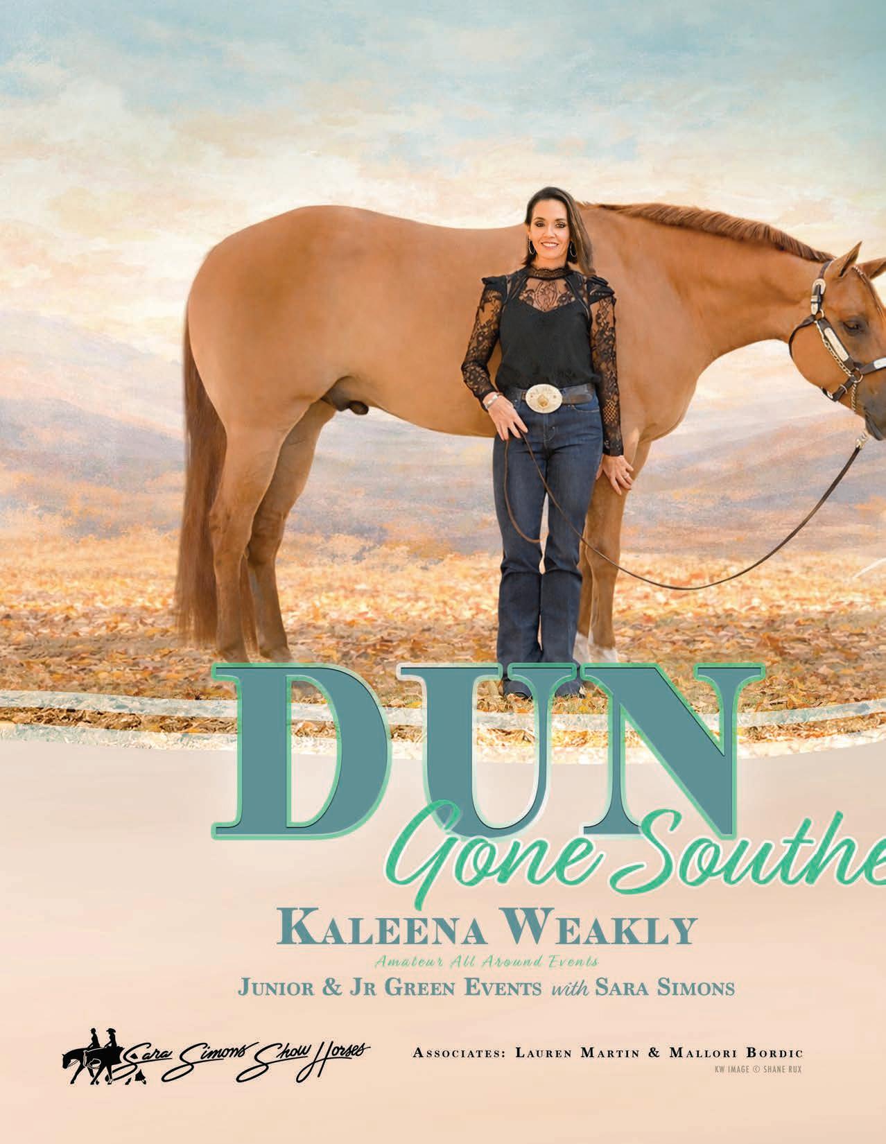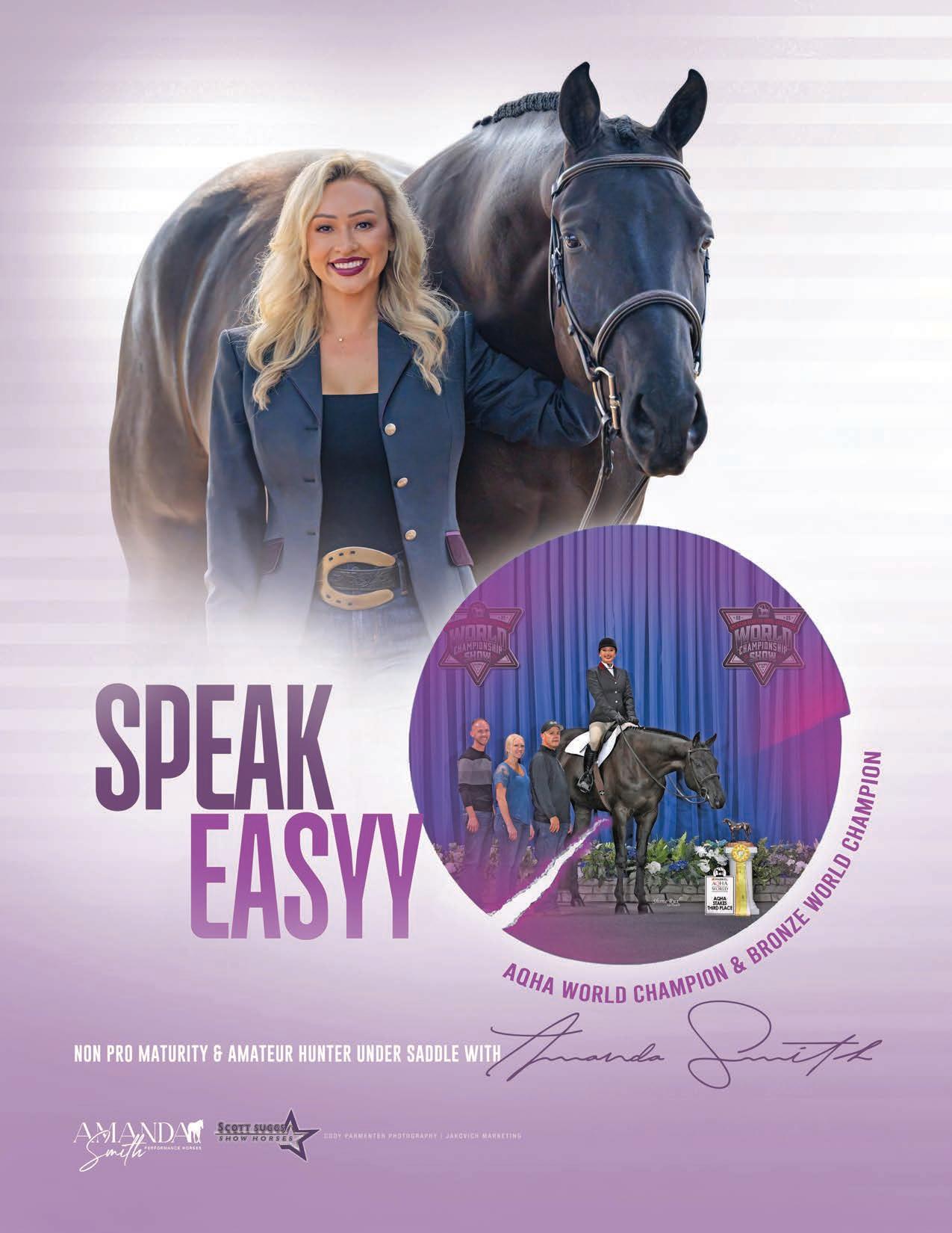 And if you get to know Kelley well, you’ll learn a few personal truths too: her favorite color is purple, she absolutely despises mayonnaise, and she and her husband will celebrate their fiveyear wedding anniversary in May. Her current show partner is the homebred Hot Mess N A Dress, lovingly known as “Emma,” with plans to debut her full sister, Bless This Hot Mess (“Haley”) later this year. Kelley also has two promising two-year-olds waiting in the wings.