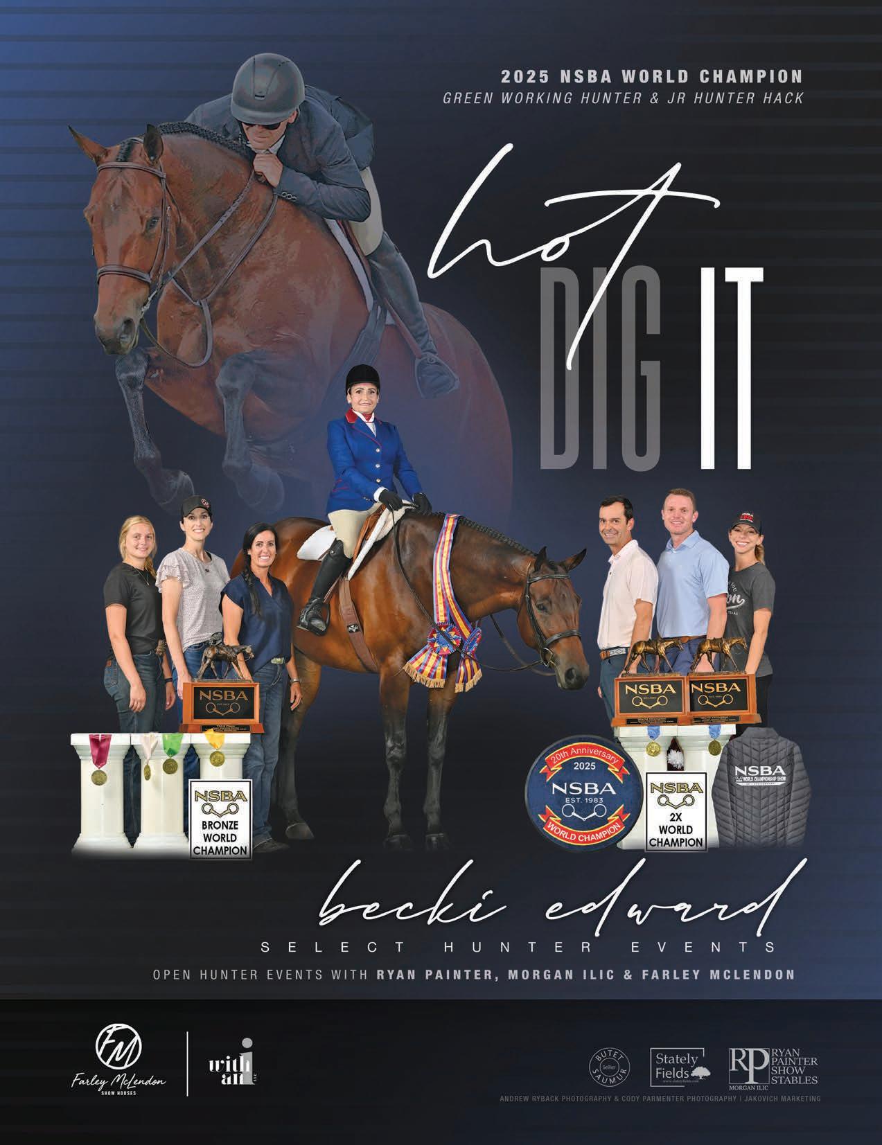 A multiple Congress and NSBA World Champion, Hot Dig It—known as “Stretch”—has already proven his talent. But for Edward, one goal is pushing them forward this fall: to win the Congress in the Select Working Hunter Under Saddle. It’s a mission powered by teamwork, collaboration, and her love for a very special horse who just keeps saying “yes.”